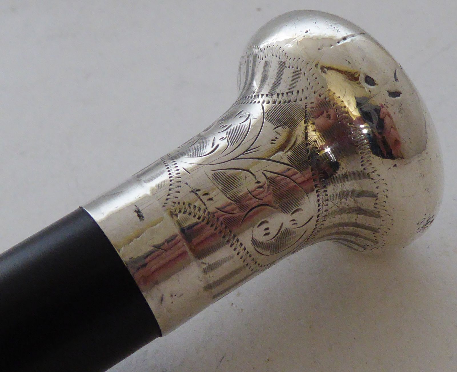 Chester 1923 Walking Stick Cane Hallmarked Solid Silver Pommel Ebonised Wood Shaft