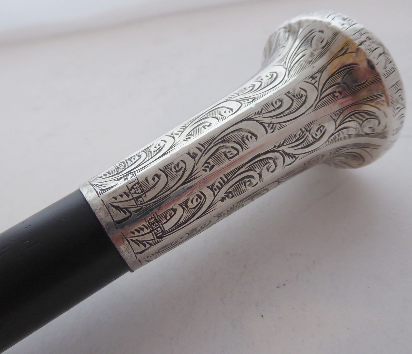 Chester 1926 Walking Stick Cane Hallmarked Solid Silver Pommel Ebony Wood Shaft