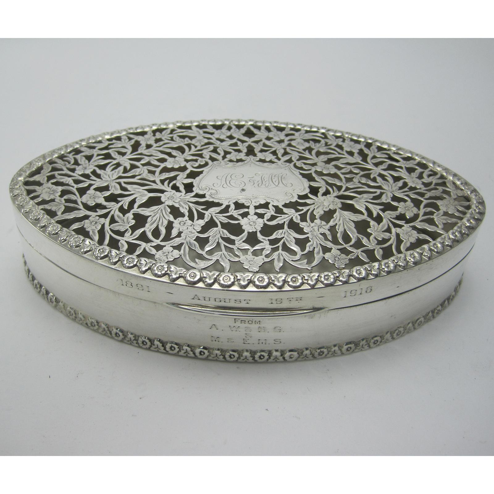 Chester Silver Oval Jewellery Potpourri Box Sold by Aspery