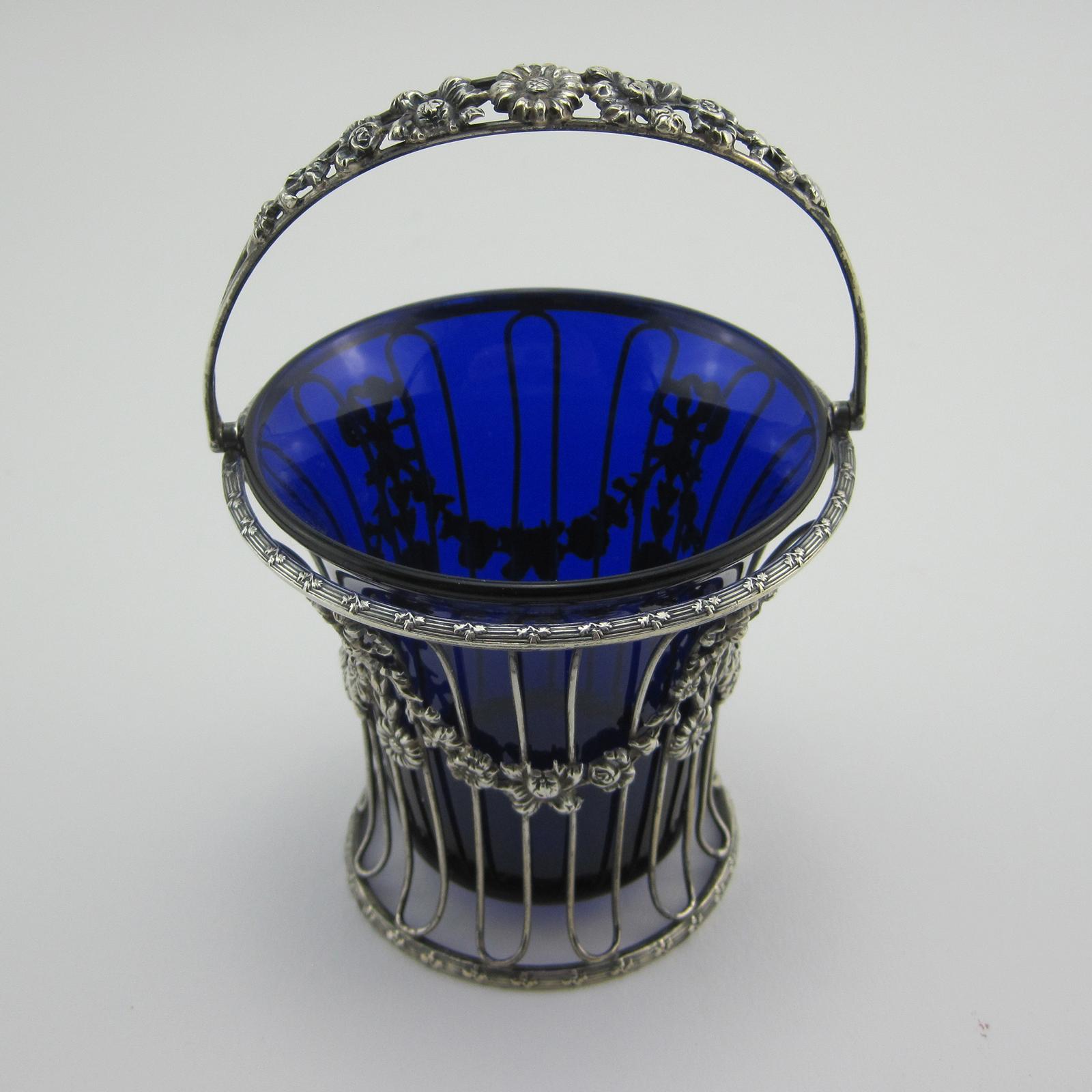 Chester Silver Sugar Basket with Cast Floral Swing Handle