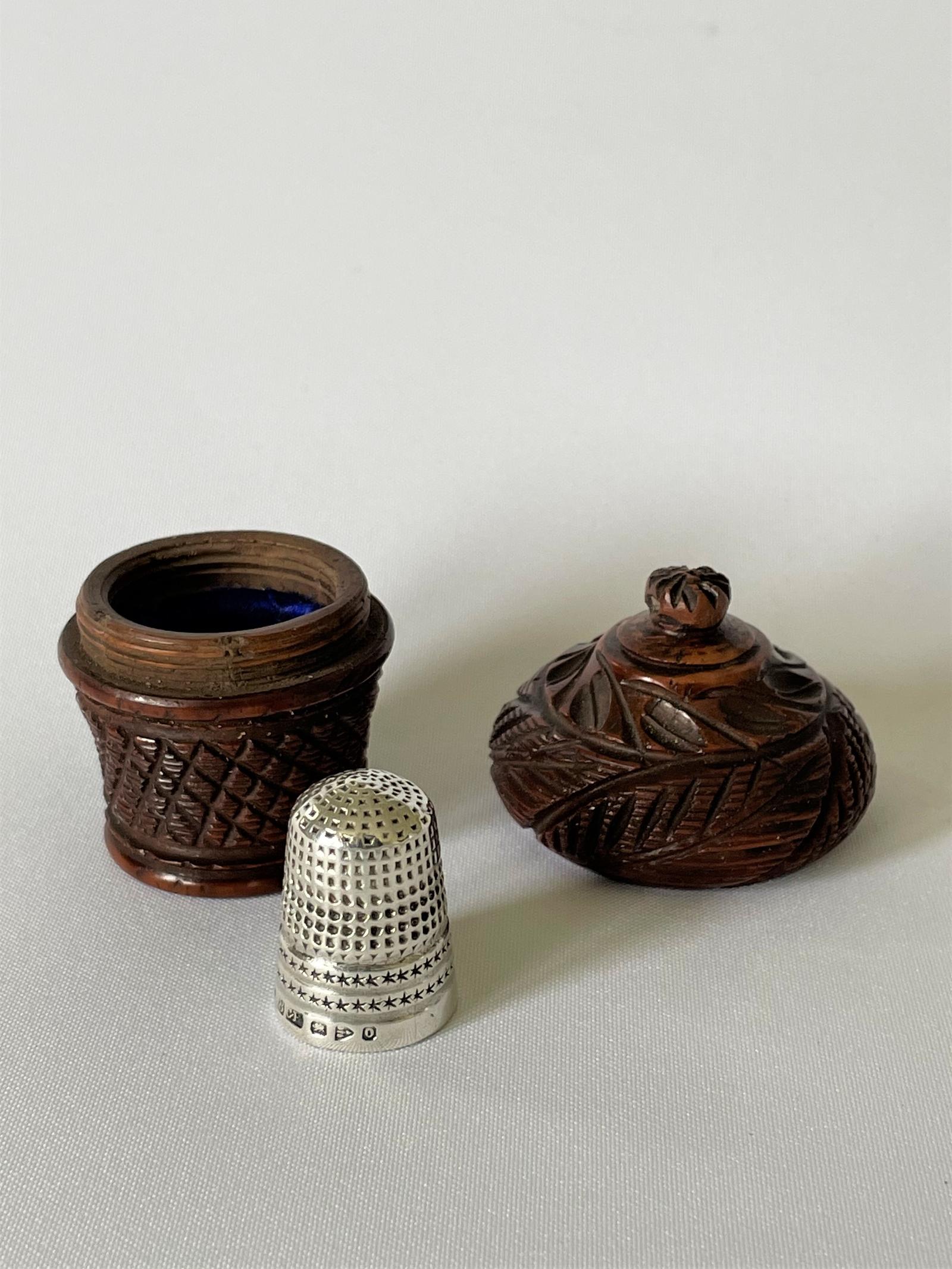 Chester Silver Thimble is Carved Treen Case (1 of 8)