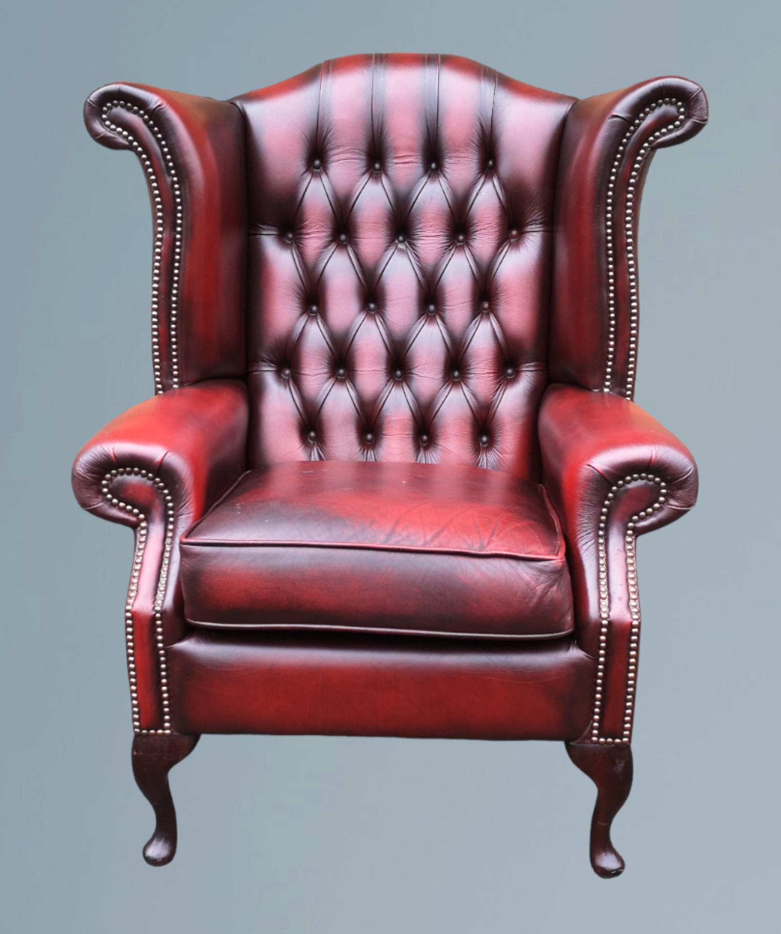 Chesterfield Queen Anne Leather High Back Wing Chair
