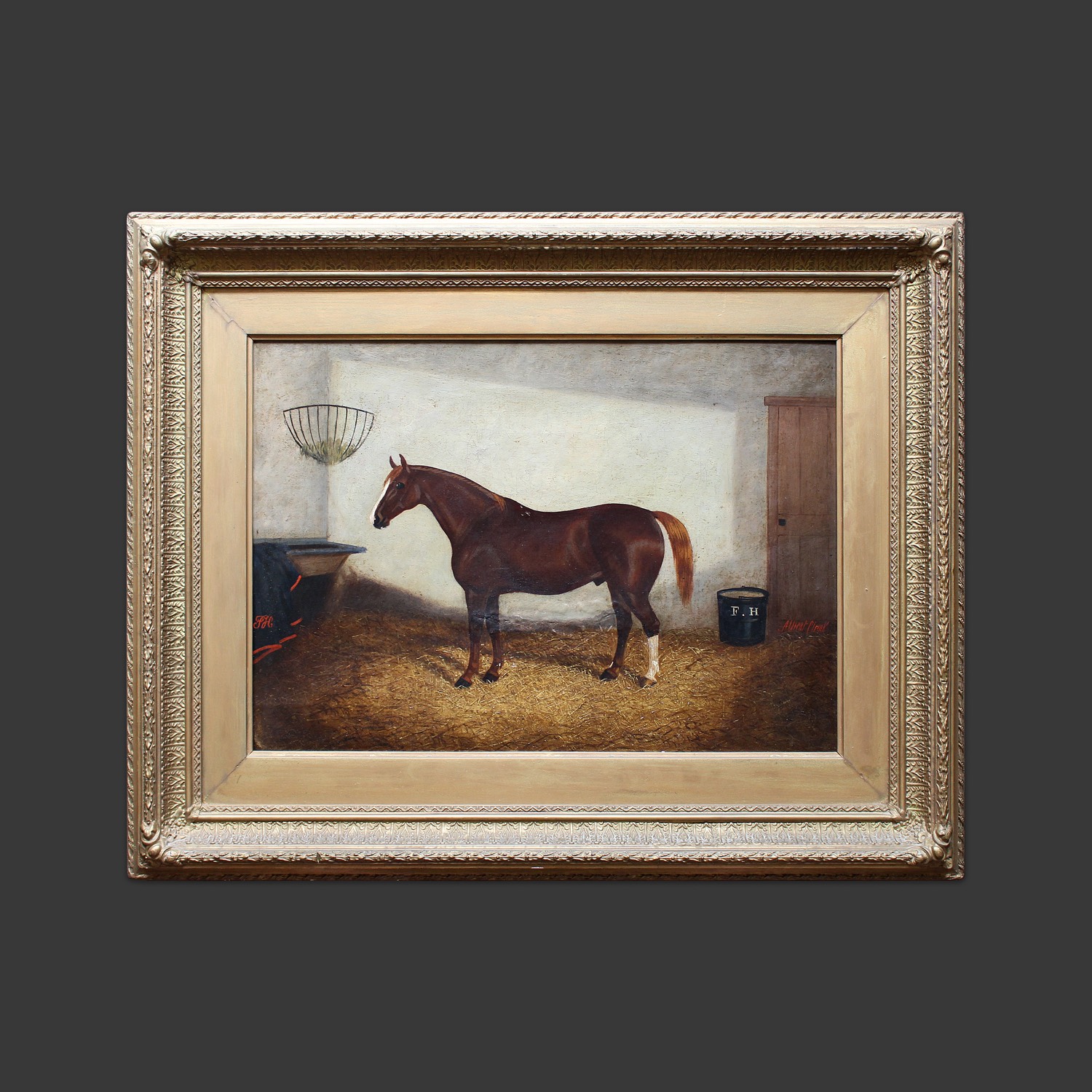 Chestnut Stallion in a Stable Interior, Antique Equestrian Oil Painting, Horse