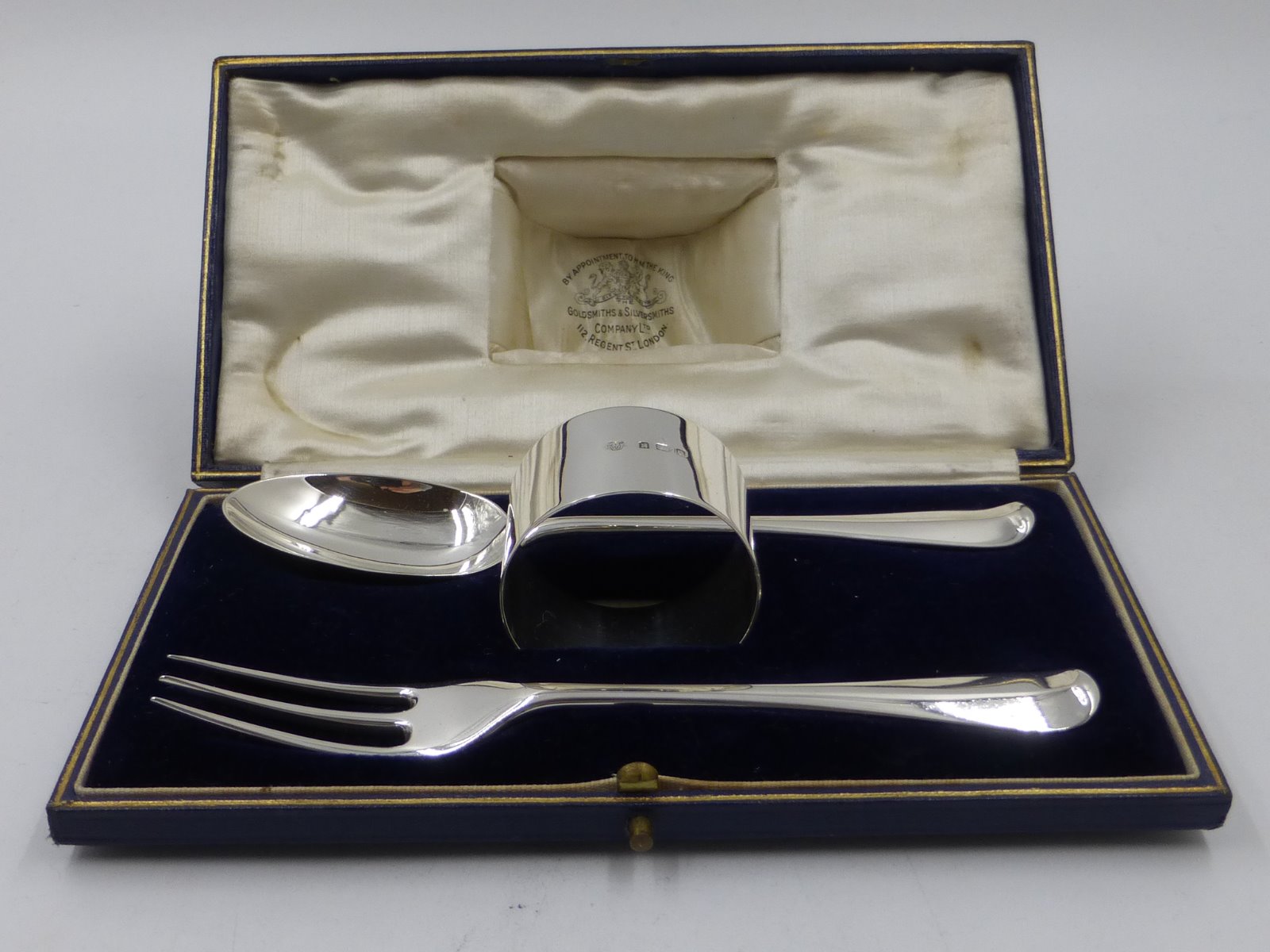Child's Silver Spoon, Fork & Napkin Ring Set, London 1935