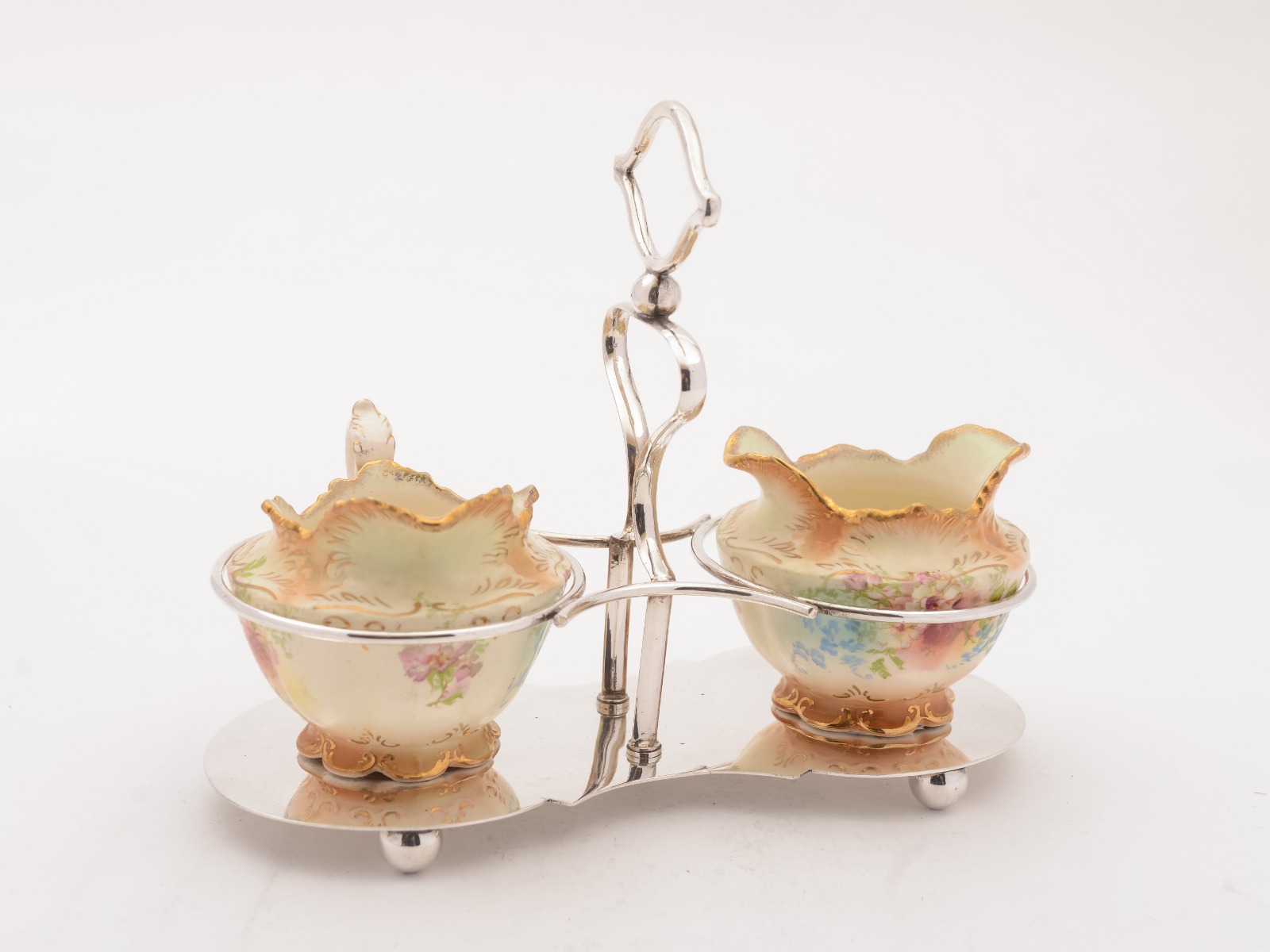 China Sugar Bowl & Jug in Stand c.1905