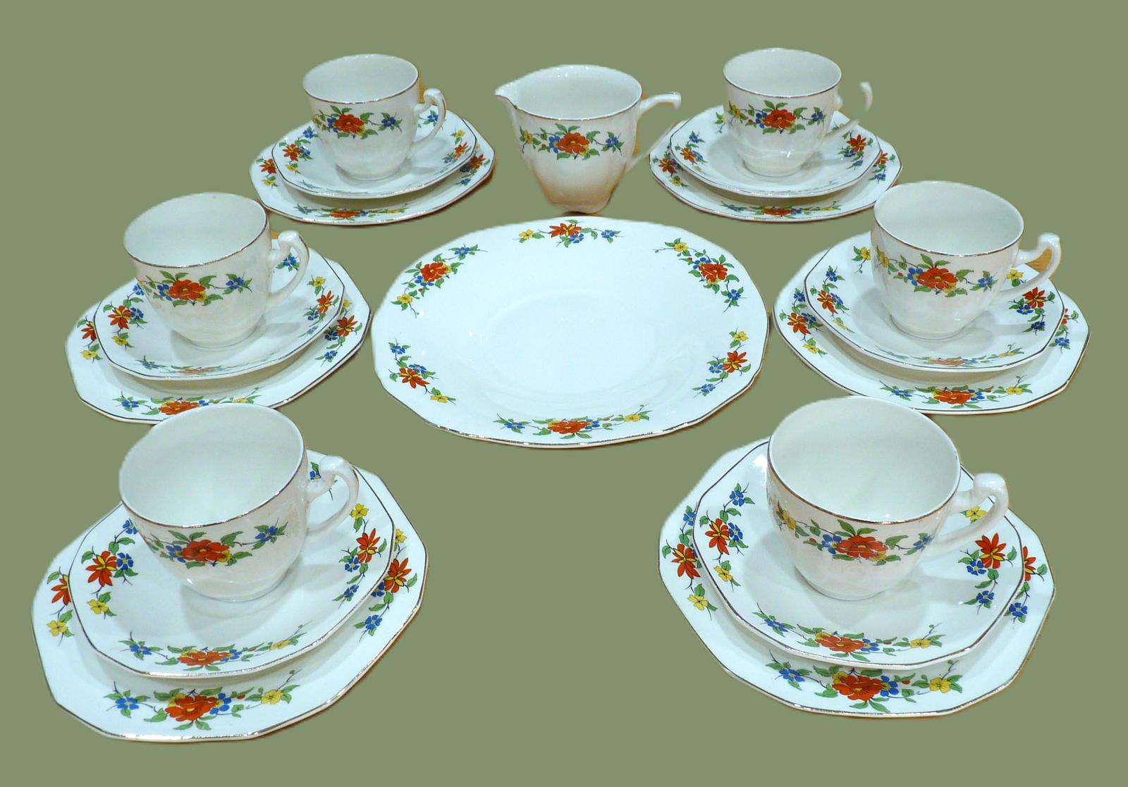 China Tea Set: Lovely Late Art Deco Alfred Meakin China Tea Set, From Their Mea199 Pattern