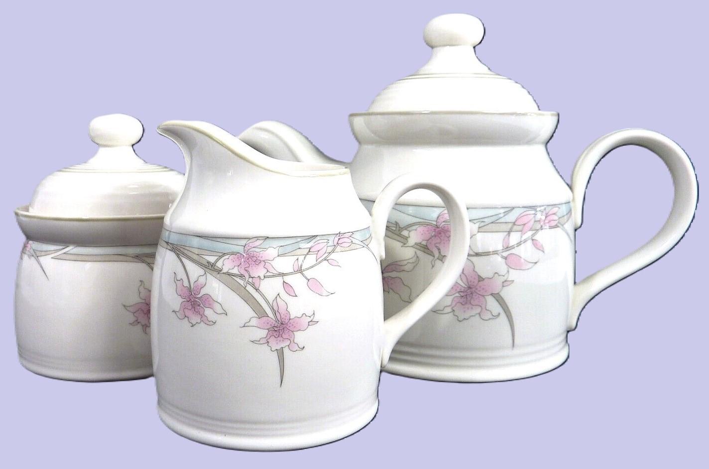 China Tea Set: Wonderful Stoneware Tea Set by Doulton, From Their Lambethware Mayfair Fresh Flowers Pattern