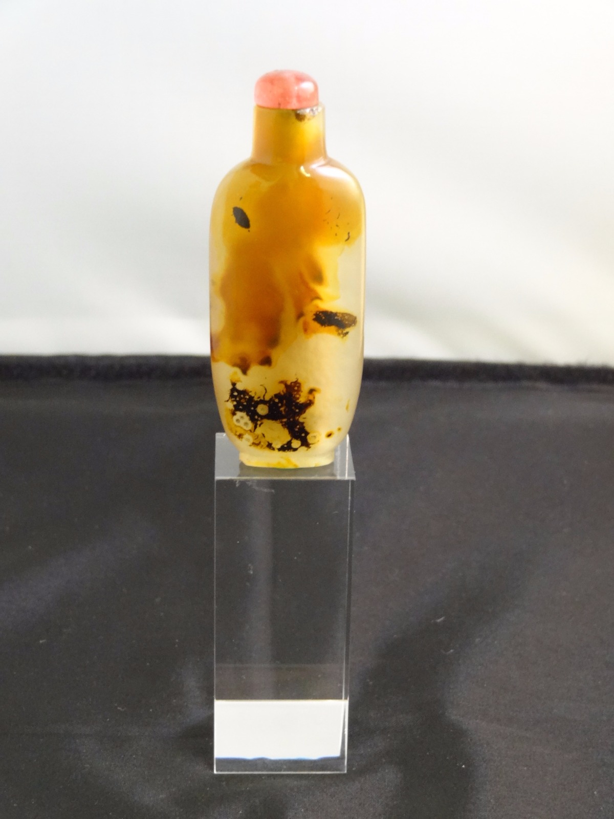 Chinese Agate Snuff Bottle, Striated Amber Colour, circa 20th Century