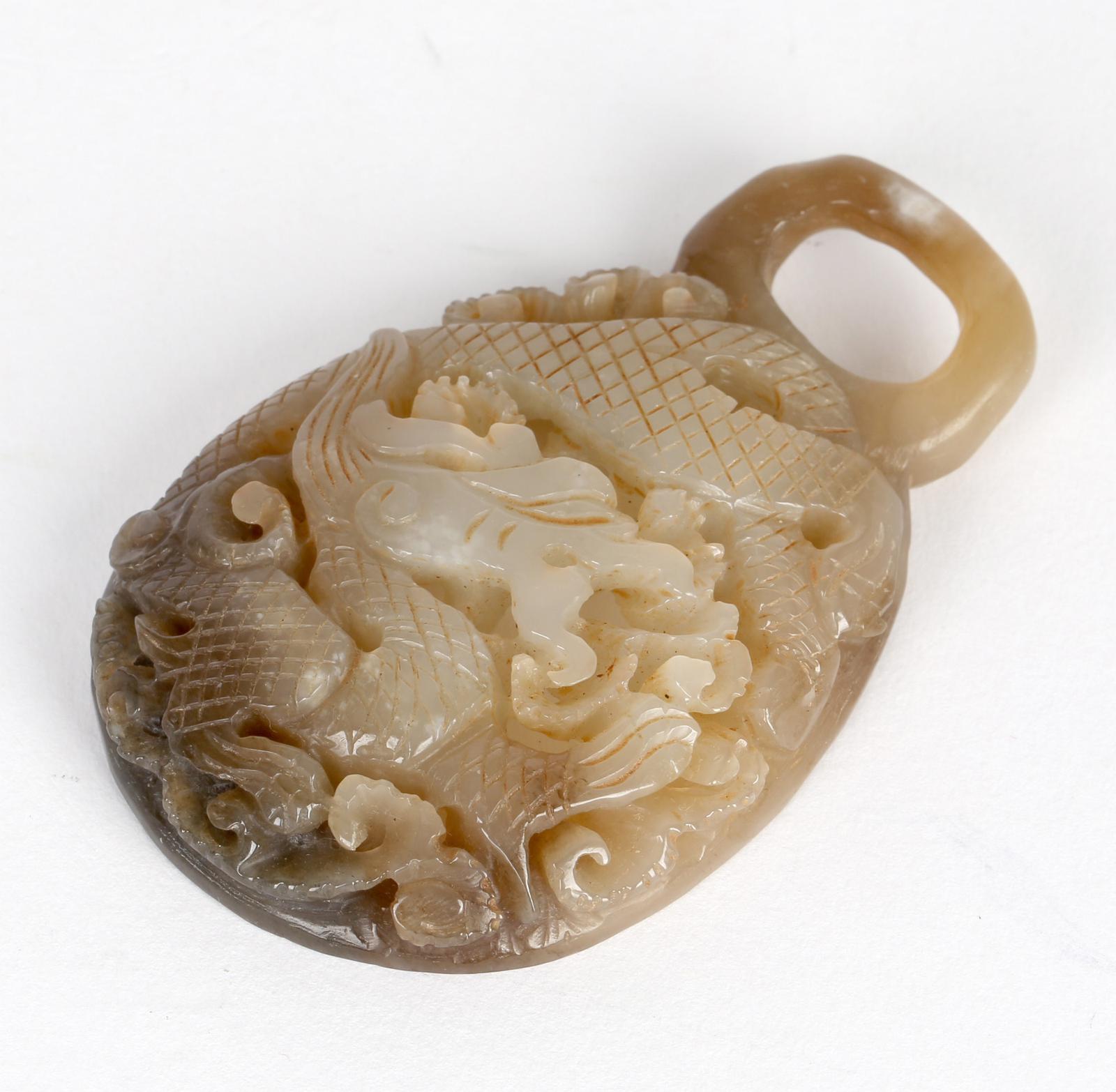 Chinese Antique Carved Jade Pendant with Scrolling Dragon