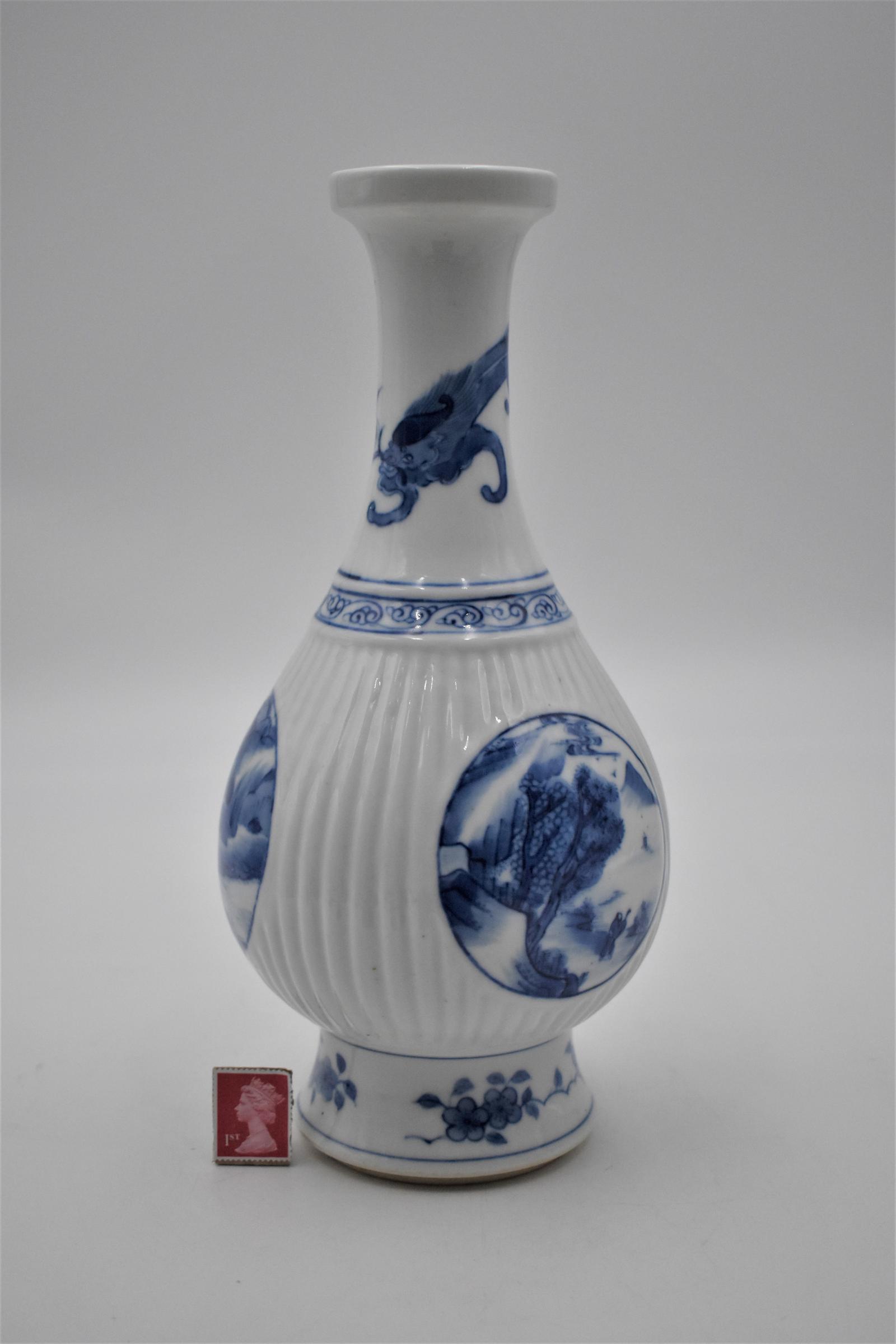 Chinese Blue & White Porcelain Ribbed Vase-19th Century