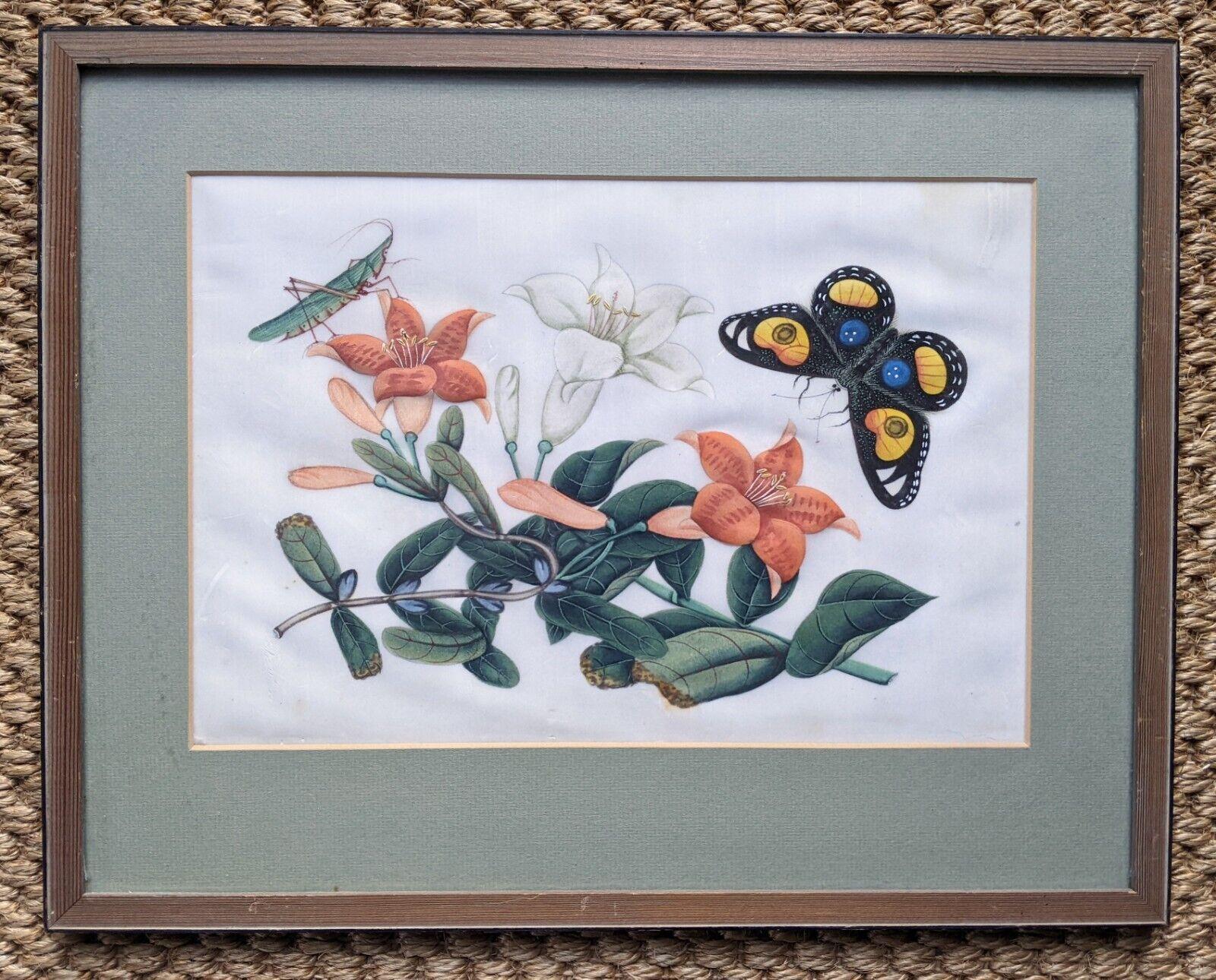 Chinese Botanical Watercolour Pith Painting Qing Dynasty