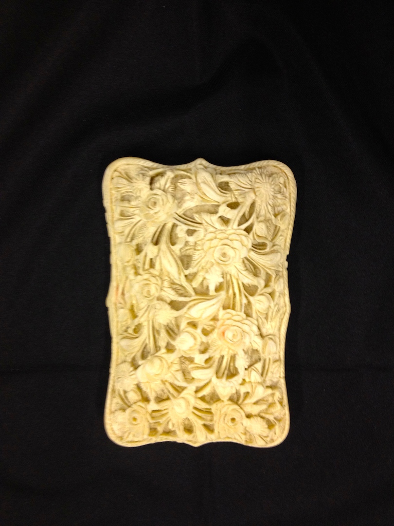 Chinese Canton Export Carved Ivory Card Case, Deeply Carved Peony & Foliage Late 19th Century