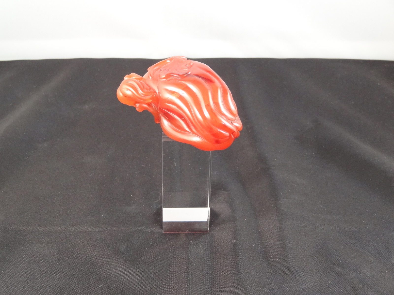Chinese Carnelian Snuff Bottle, Carved Buddhist Finger with Leafage & Stem, Mid-Late 19th Century