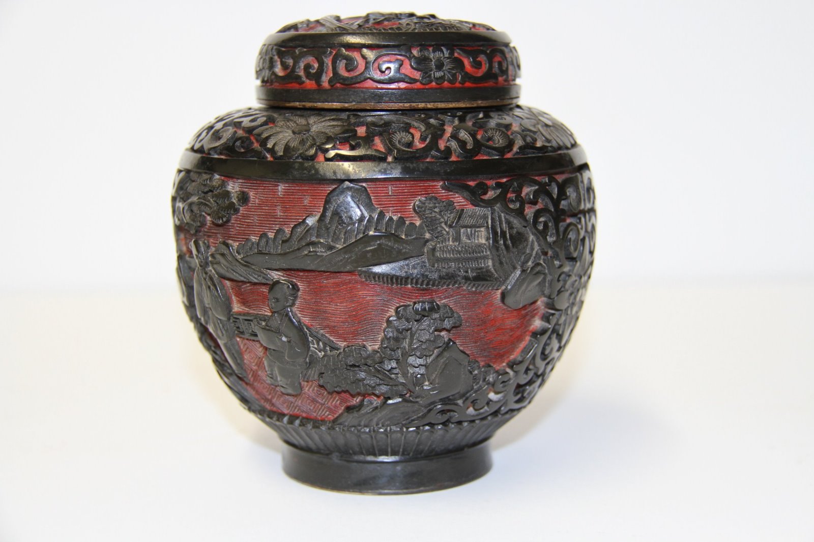 Chinese Carved Lacquered Jar & Cover (1 of 15)
