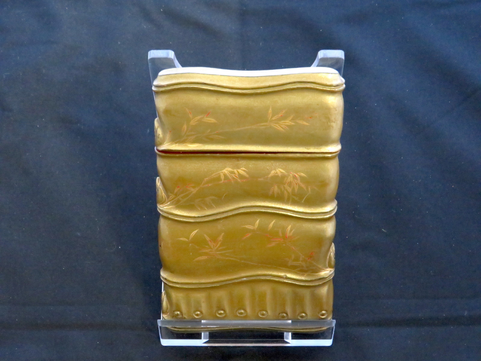 Chinese Carved & Painted Wood Card Case, Painted with Foliage, 19th Century