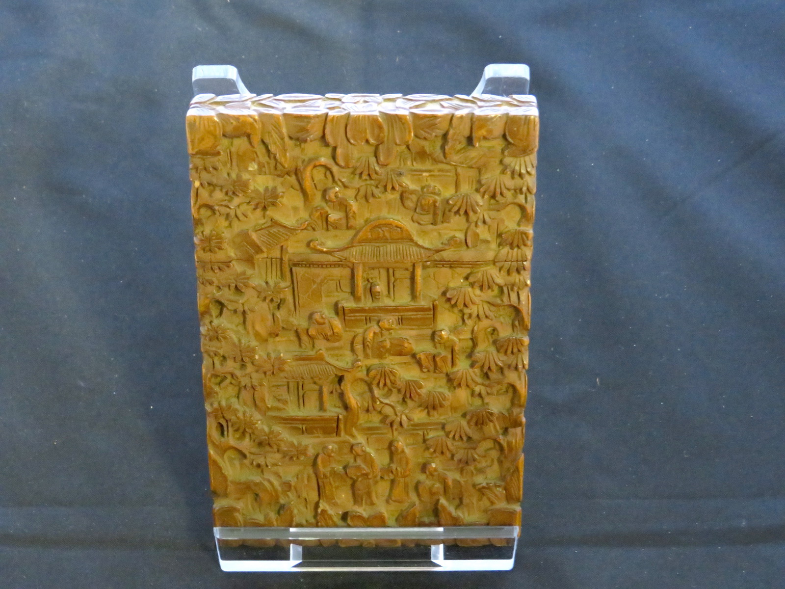 Chinese Carved Wood Card Case, Carved Scenes, Mid 19th Century