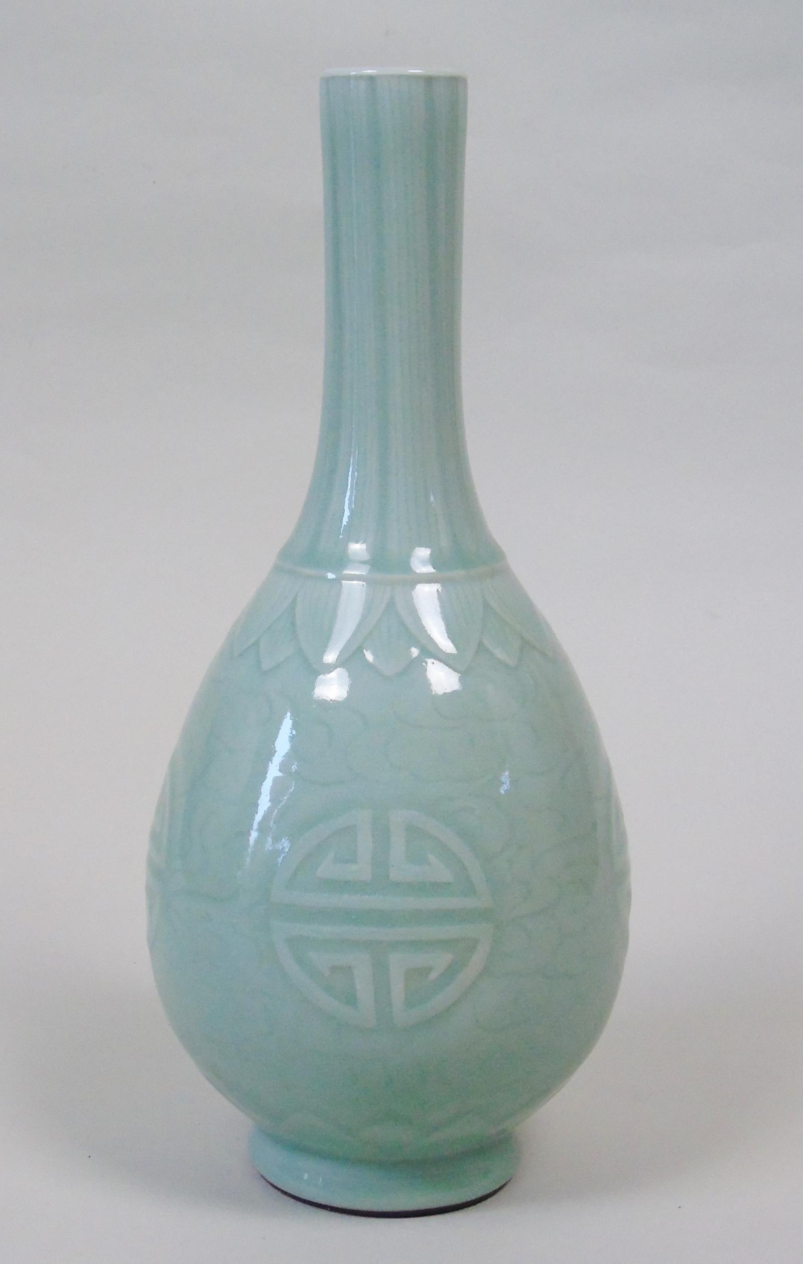 Chinese Celadon Bottle Vase Qianlong Mark (1 of 4)