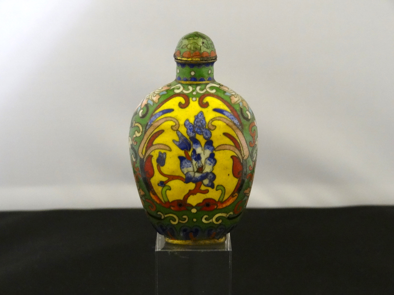 Chinese Cloisonne Enamel Snuff Bottle, Decorated with Flowering Lotus c.1900