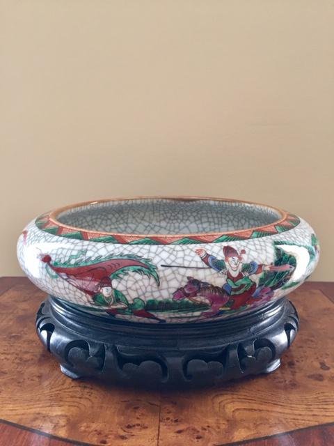 Chinese Crackle-glaze Bowl on Wooden stand, Qing Dynasty
