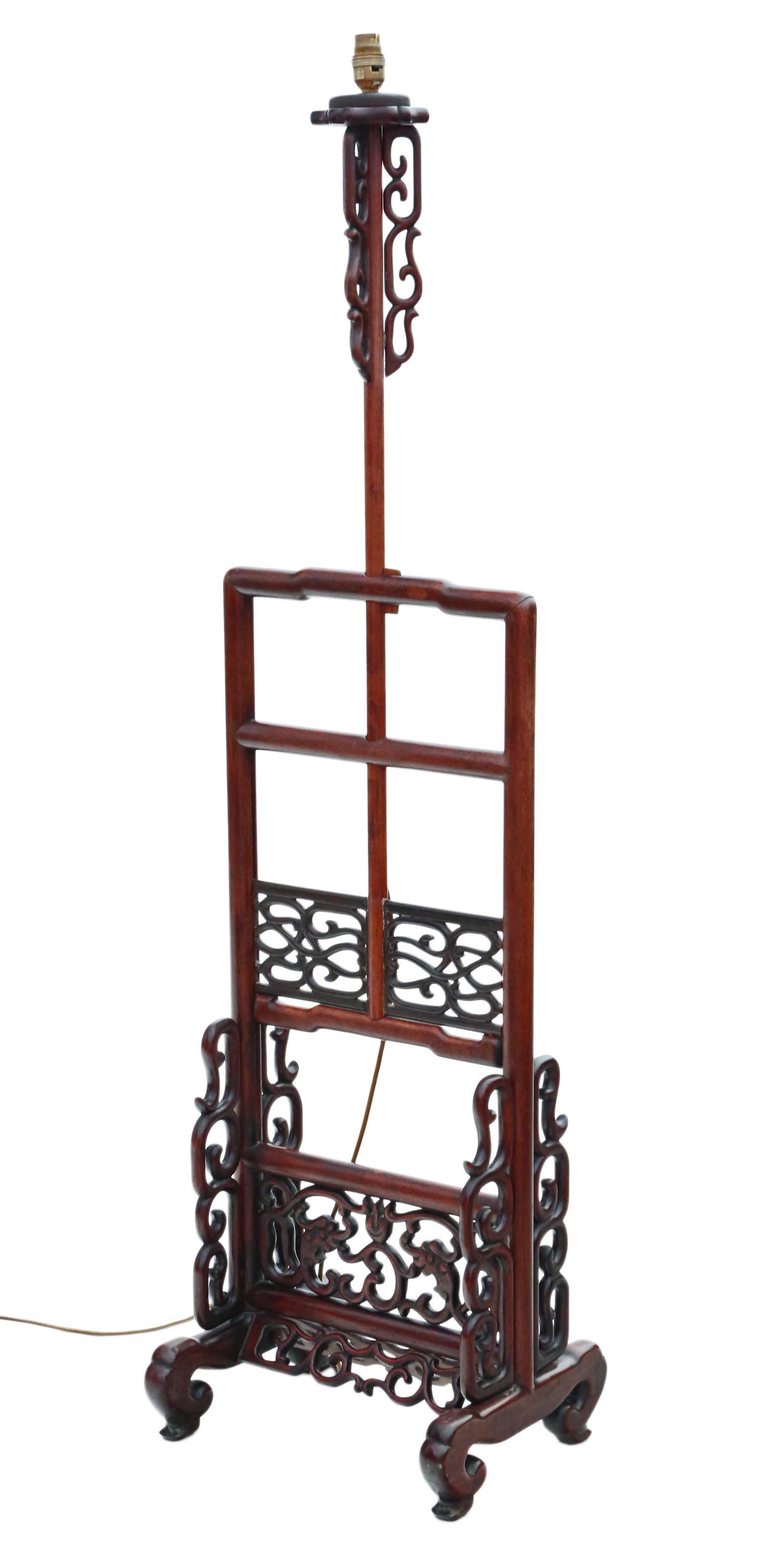 Chinese Decorative Mahogany Standard Reading Lamp c.1920 (1 of 5)