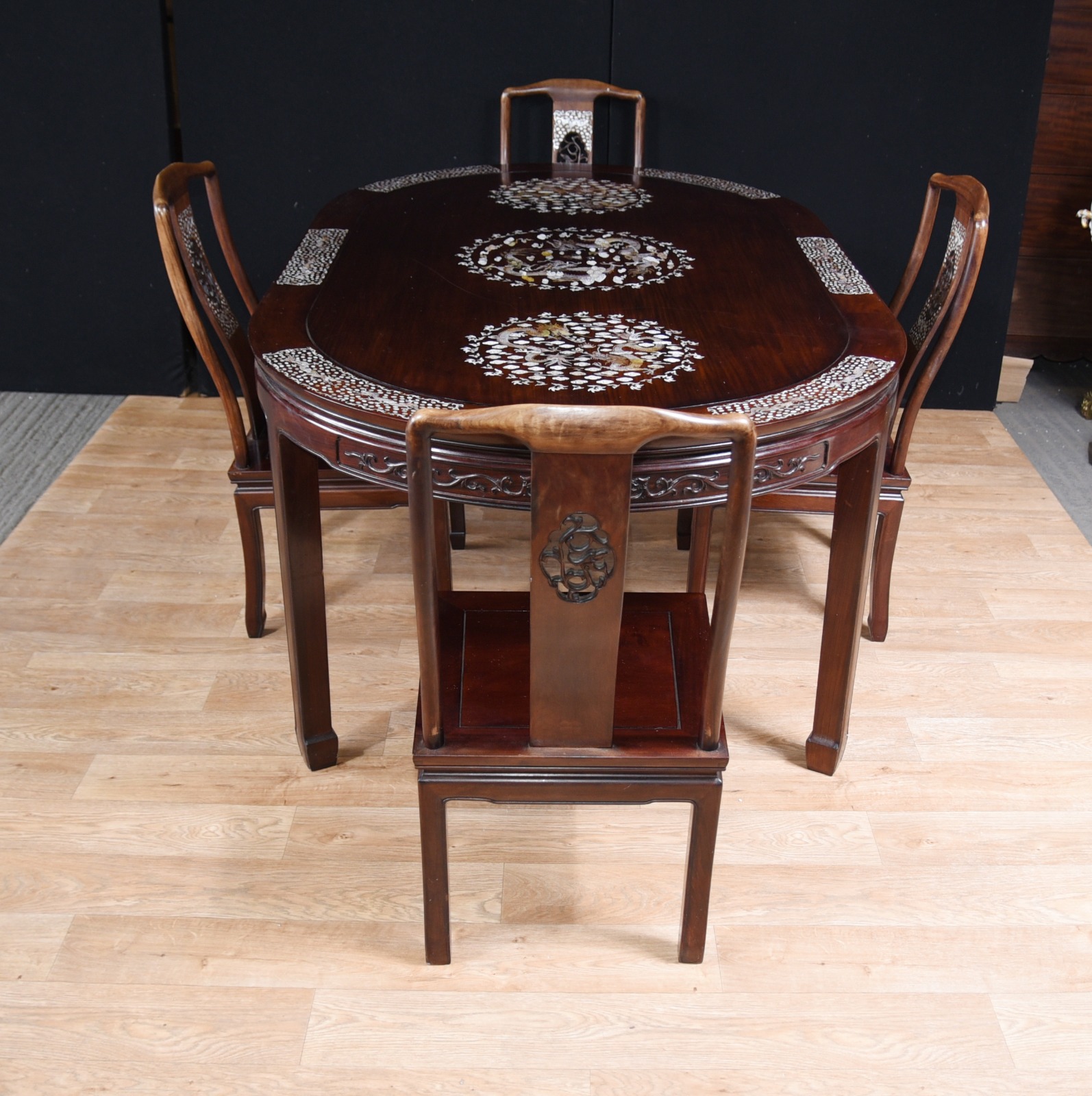 Chinese Dining Set Table & Chairs Mother of Pearl Inlay c.1920