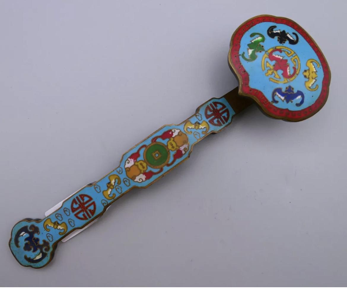 Chinese Enamel Decorated Bronze Ruyi Sceptre