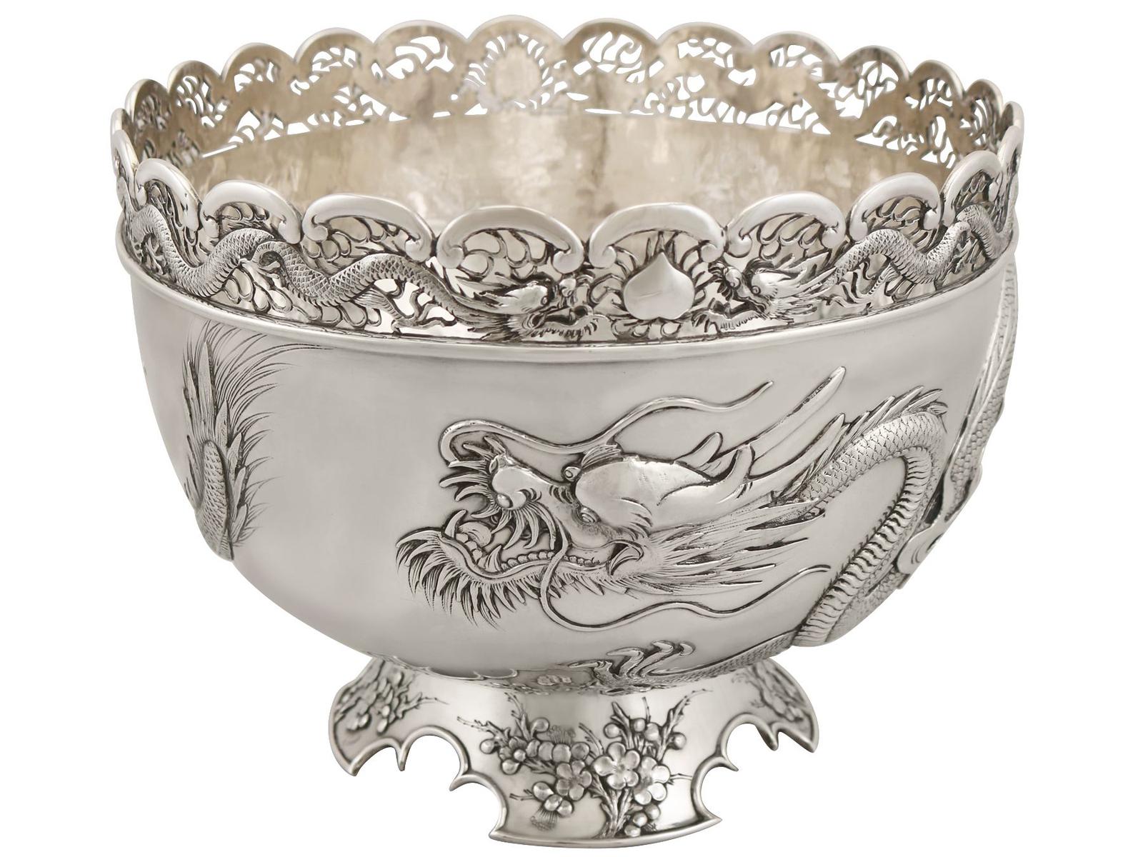 Chinese Export Silver Dragon Bowl - Antique c.1900 (1 of 12)