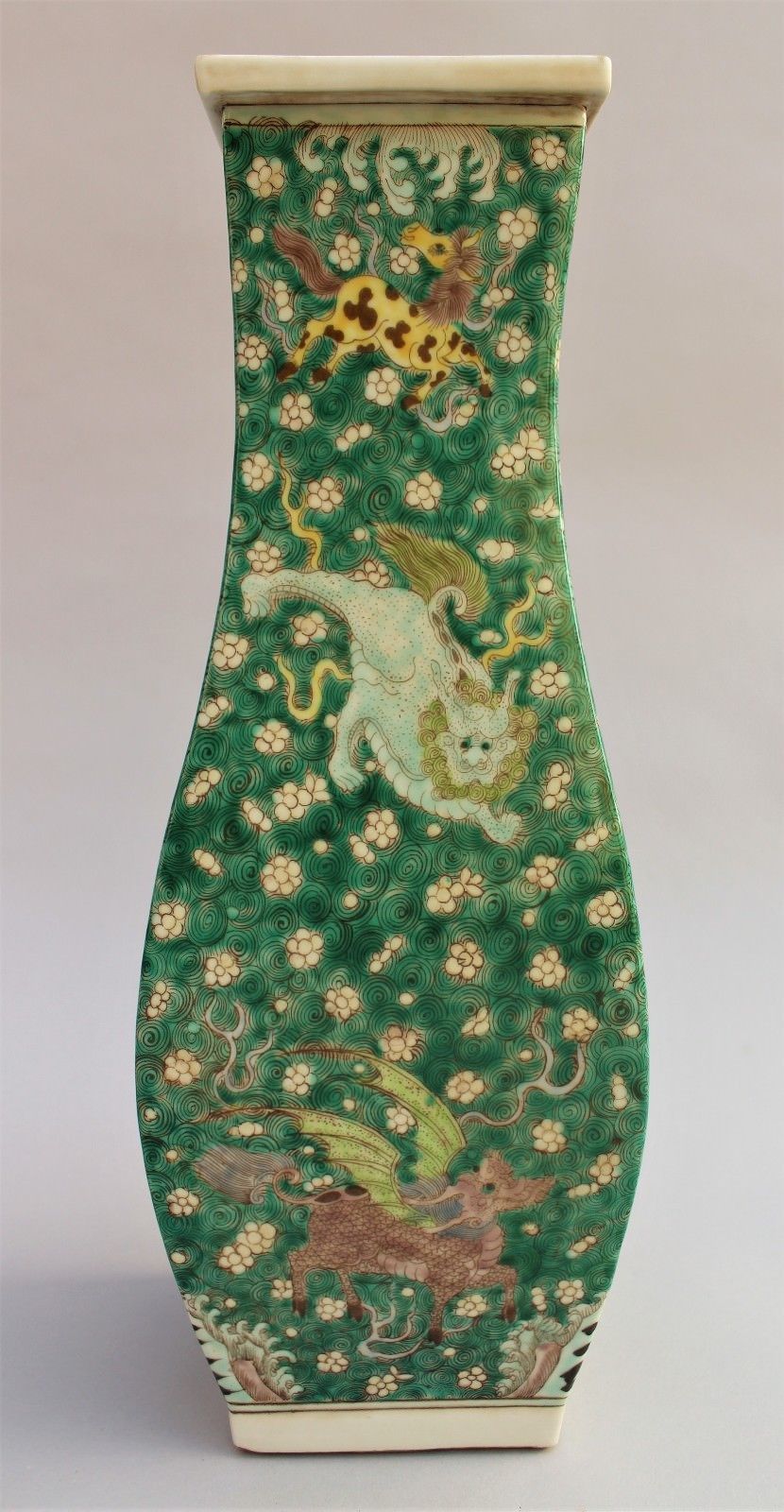 Chinese Famille Vert Vase with Mythical Beasts c.1920