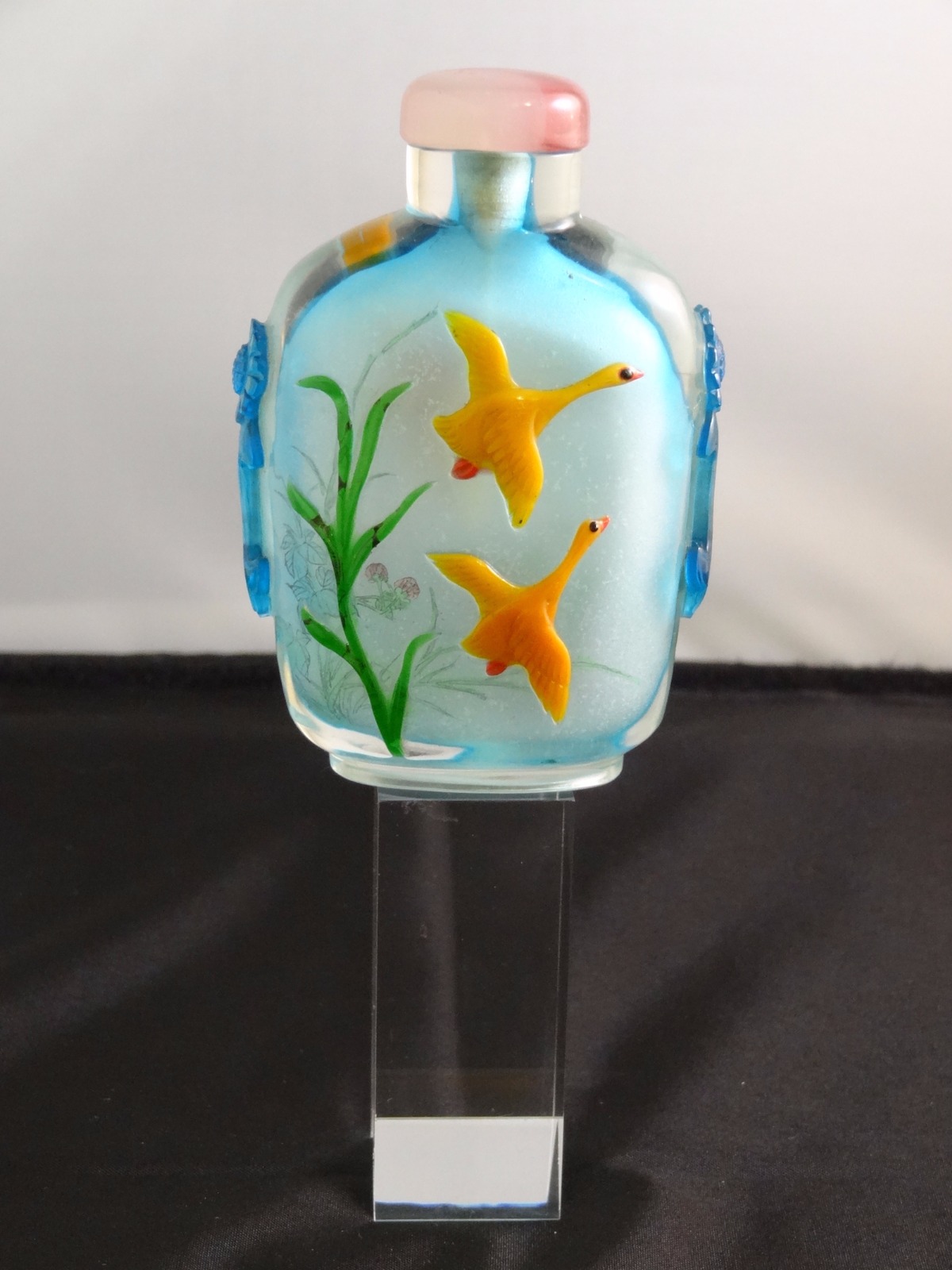 Chinese Glass Overlay Snuff Bottle, Interior Painted with Flowers and Foliage, circa 20th Century