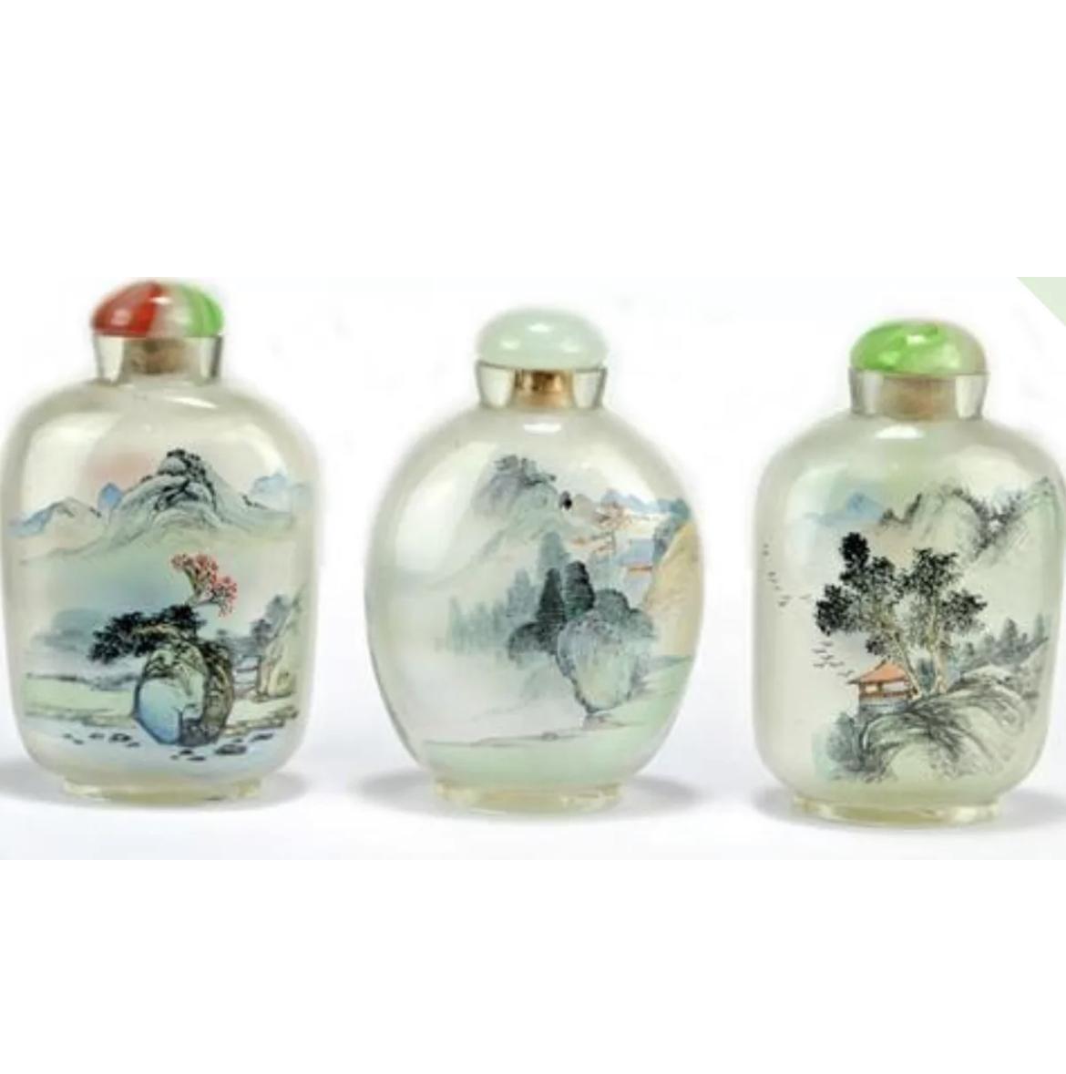 Chinese Glass Painted Snuff Bottles With Decorated Landscapes