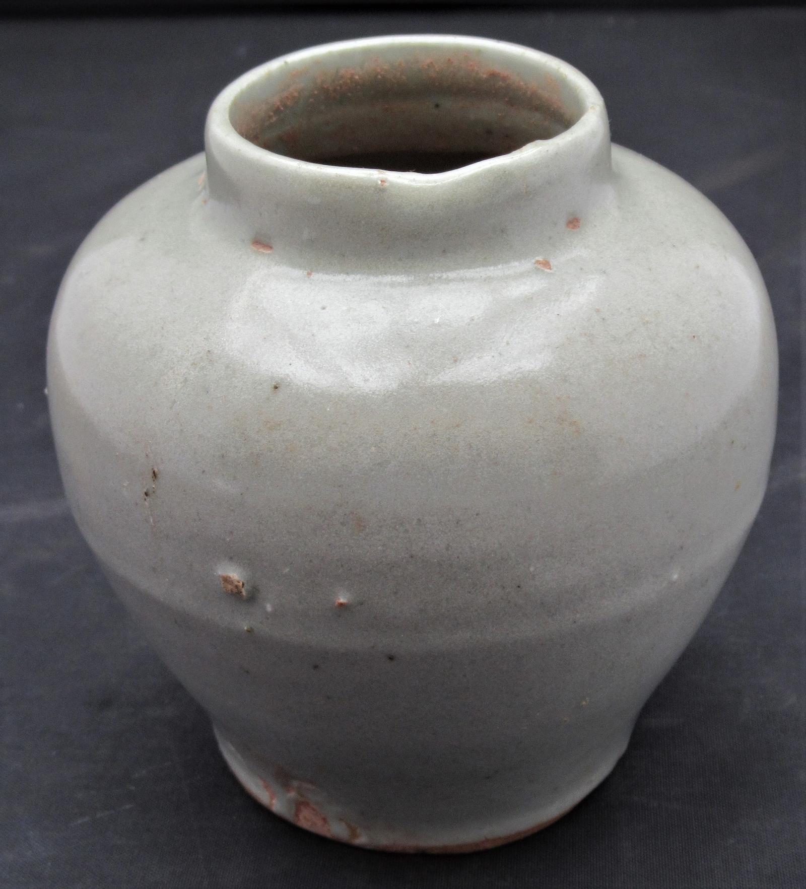 Chinese grey celadon glaze small jar or vase, Yuan dynasty (1280-1367)