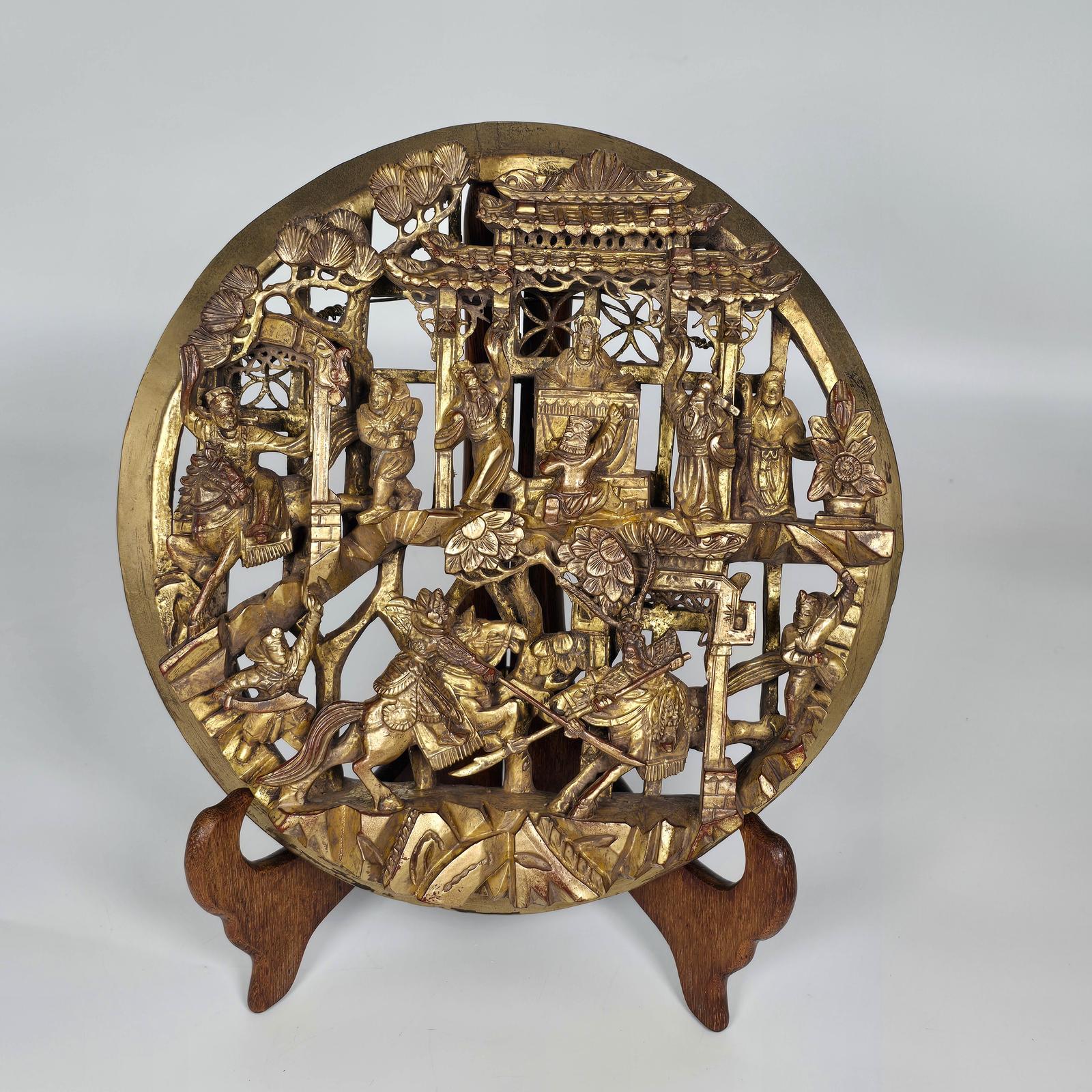 Chinese Hand Carved Giltwood Wall Plaque (1 of 15)