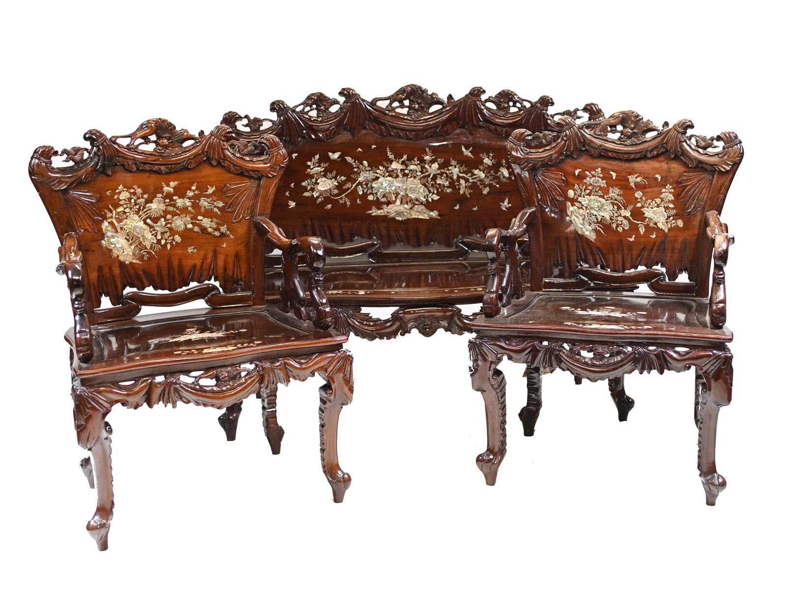 Chinese Hardwood Bench & Chair Set Suite Mother of Pearl c.1900