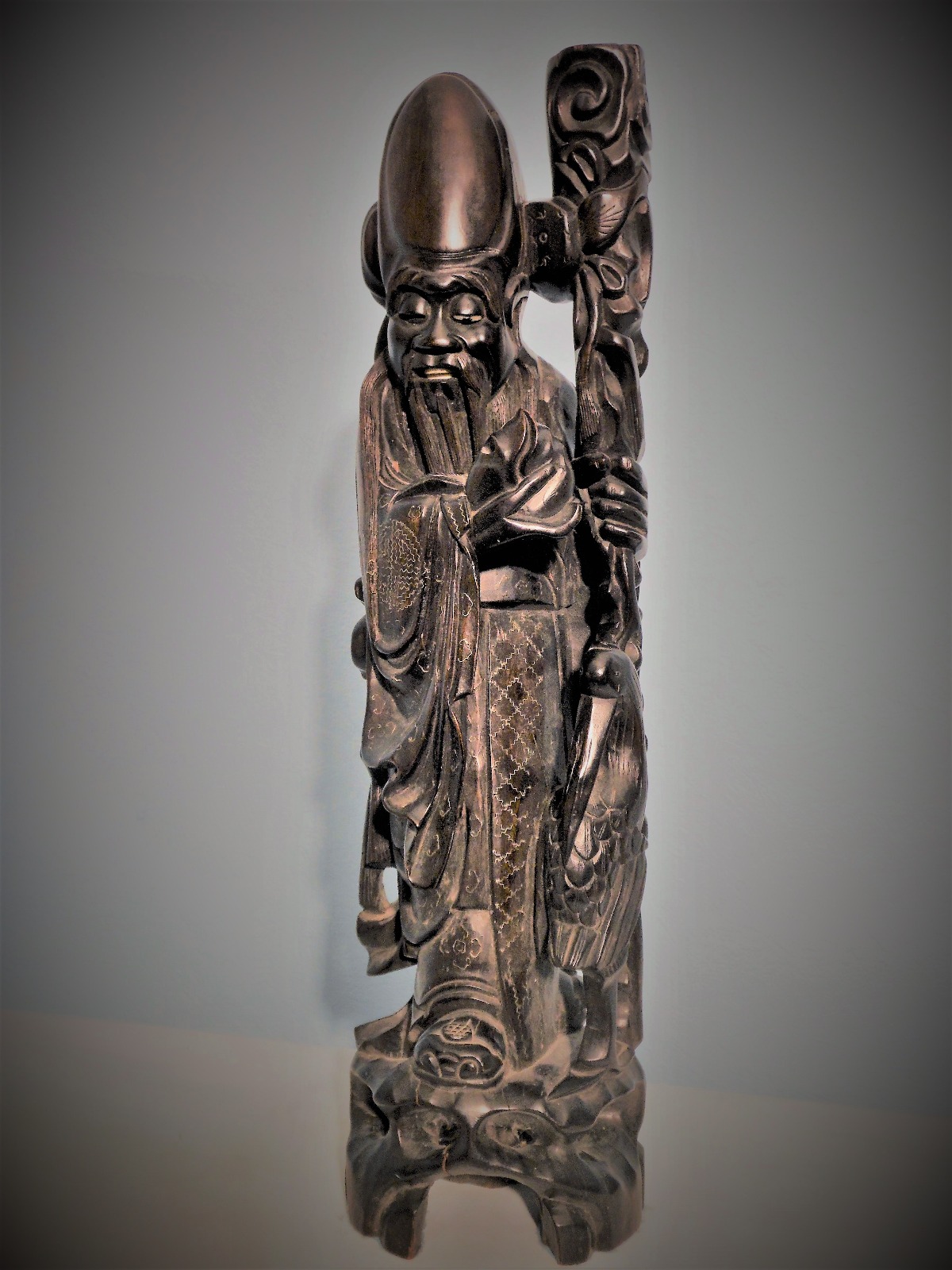 Chinese Hardwood Sliver Inlay Sculpture of Shou Xing C.1860