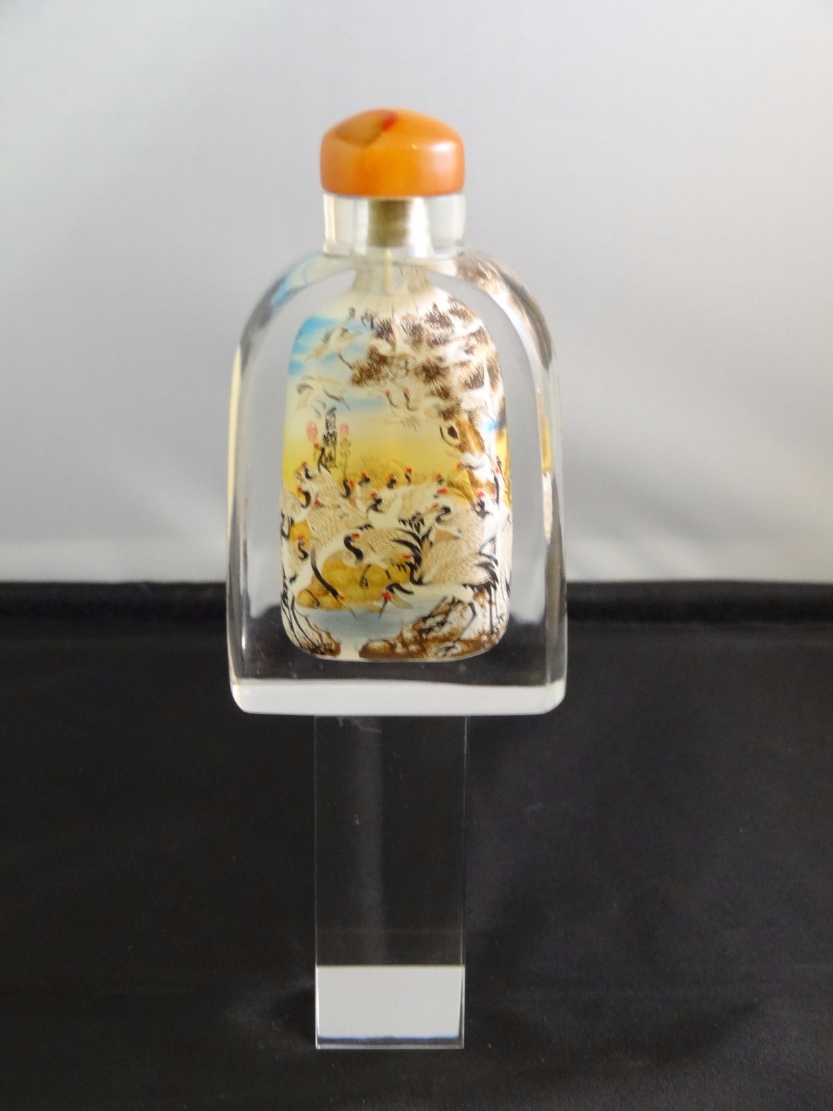 Chinese Interior Painted Clear Glass Snuff Bottle, Tapering & Thickly Hollowed, 20th Century