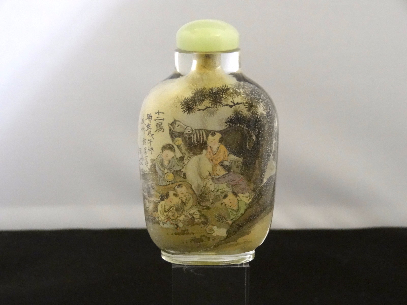 Chinese Interior Painted Glass Scent Bottle 'Scenes Of Children Playing' Chinese Calligraphy