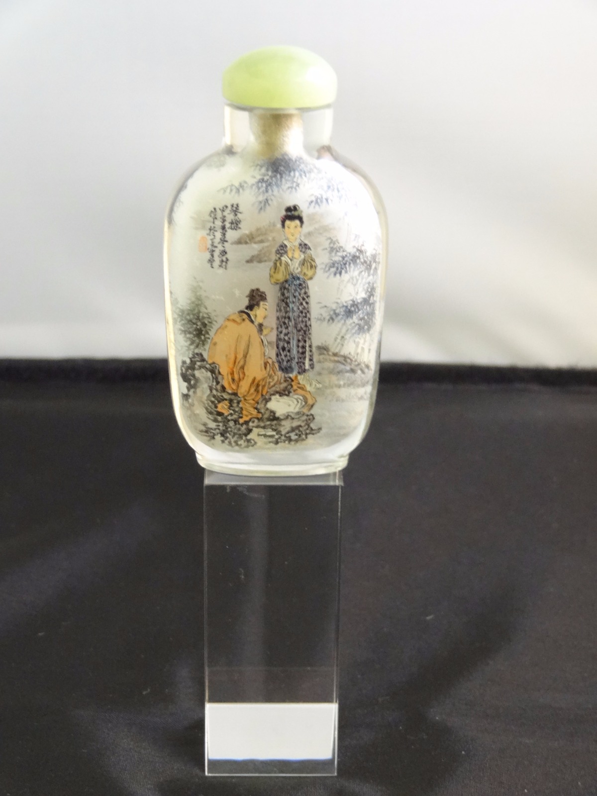 Chinese Interior Painted Glass Snuff Bottle, Decoration Depicting Figures in Landscape, circa 20th Century