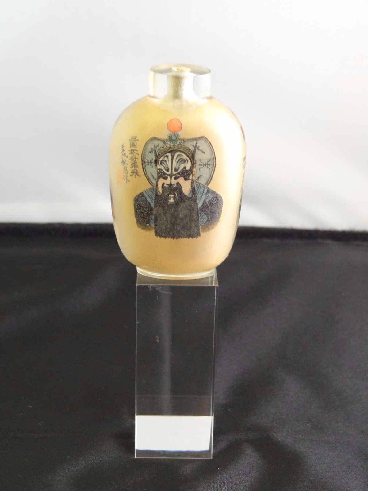 Chinese Interior Painted Glass Snuff Bottle, Painted On Each Side with a Warrior Figure, circa Early 20th Century