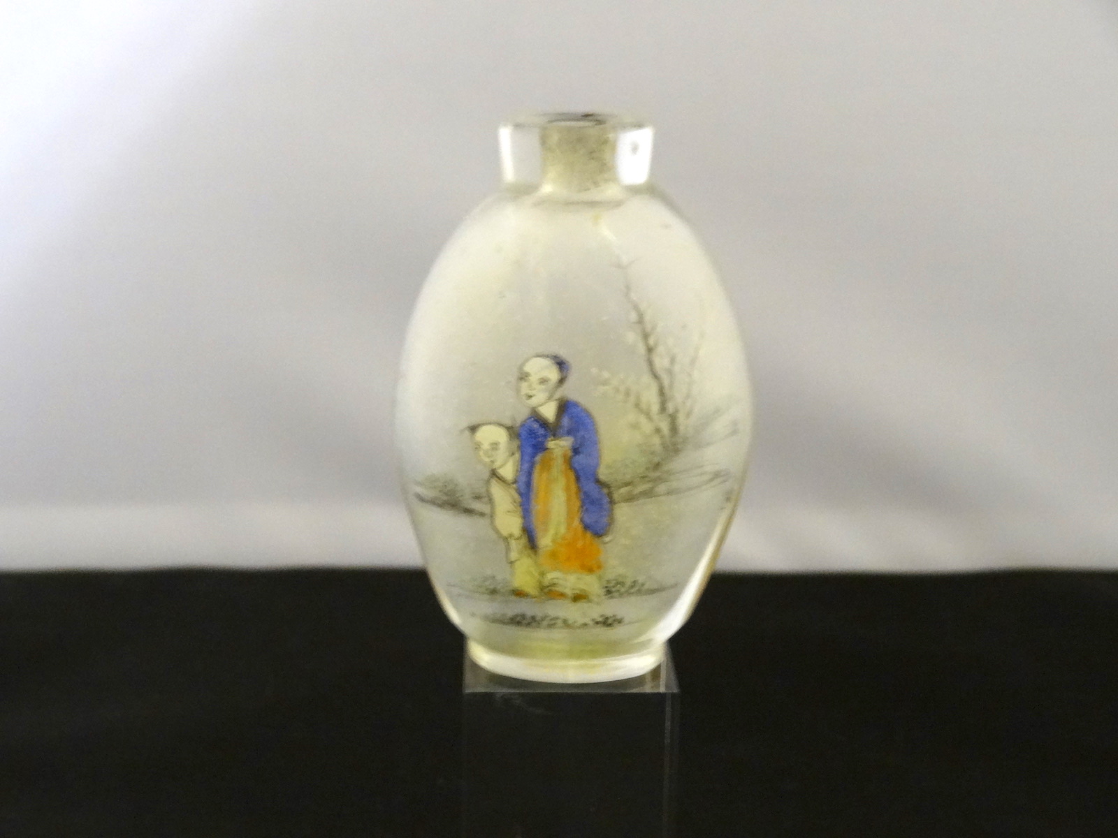 Chinese Interior Painted Glass Snuff Bottle, Rounded Lozenge Form C.1900