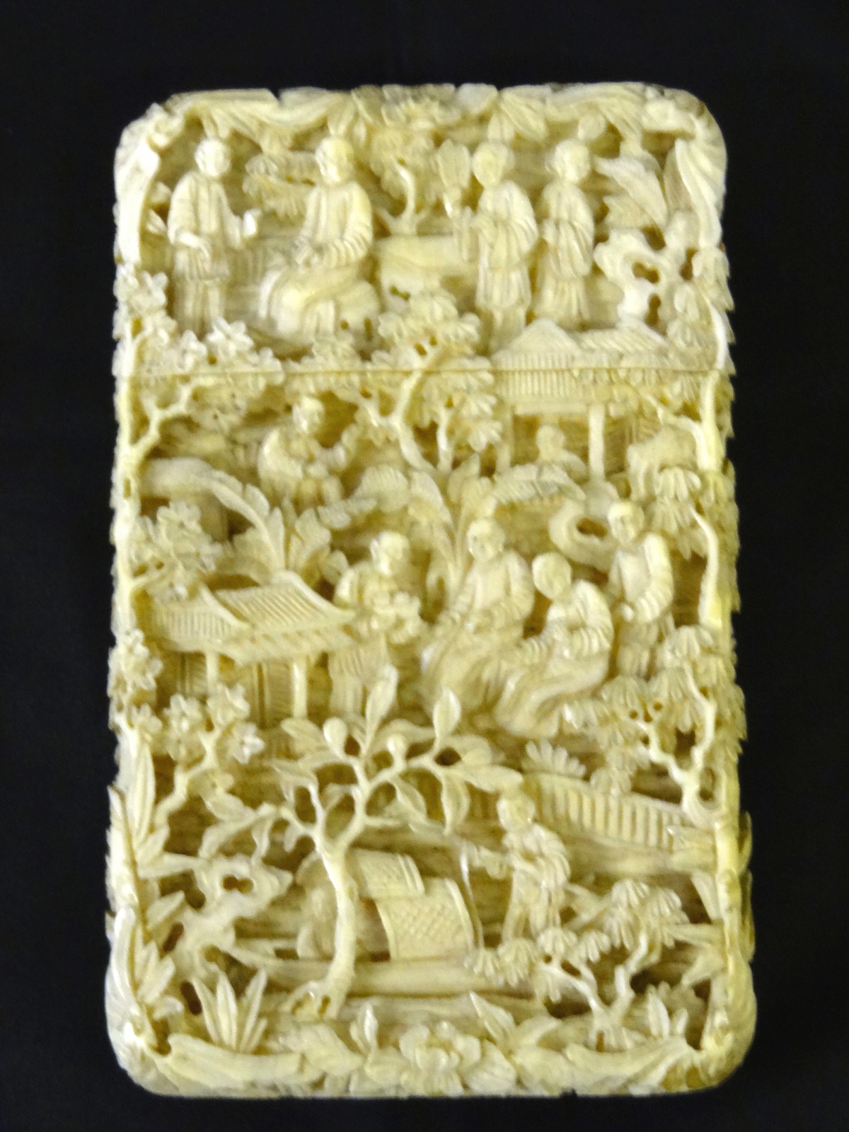 Chinese Ivory Export Card Case Carved in Deep Relief, 19th Century