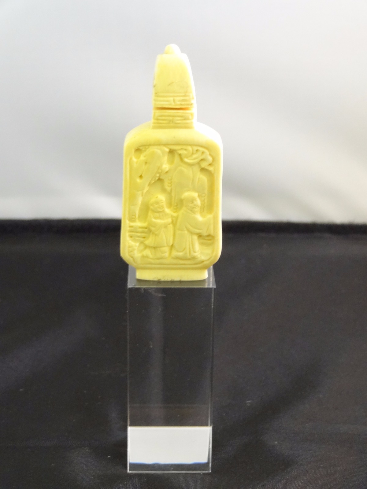 Chinese Ivory Snuff Bottle, Carved in Relief On Both Sides, circa First Half 20th Century