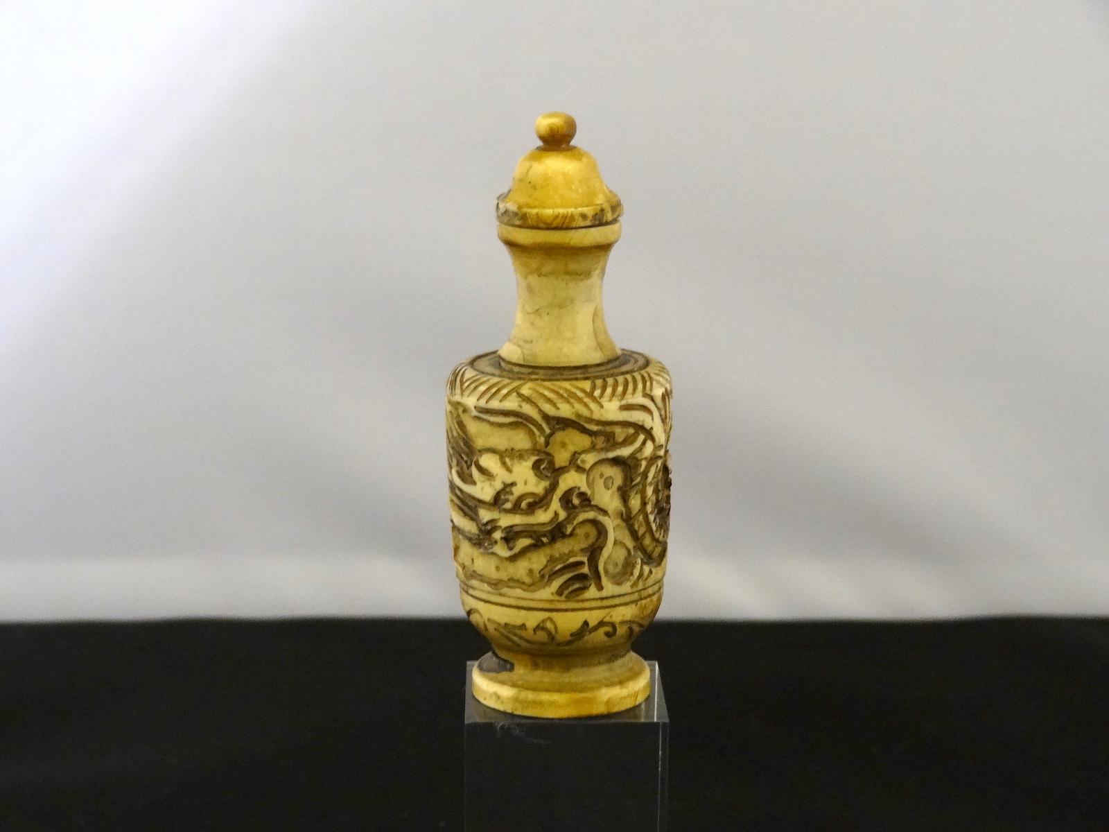 Chinese Ivory Snuff Bottle, Carved in Relief with Dragons, 20th Century