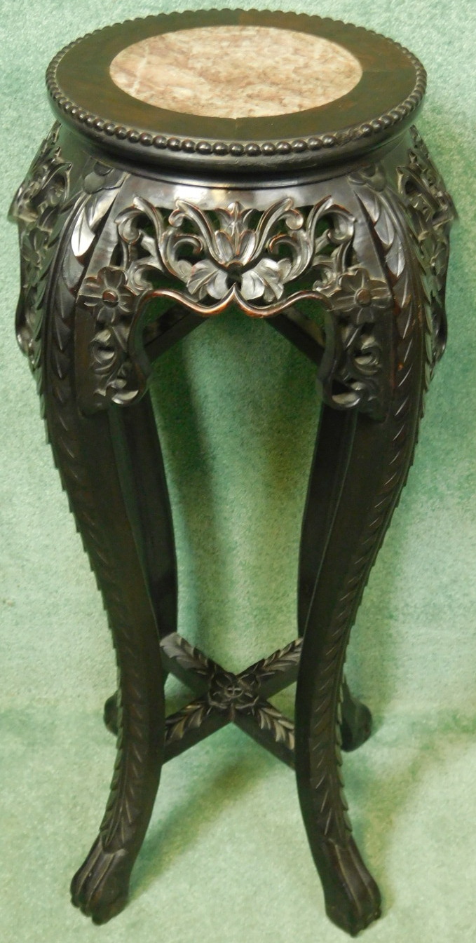 Chinese Oriental Carved Hardwood Plant Stand (1 of 1)