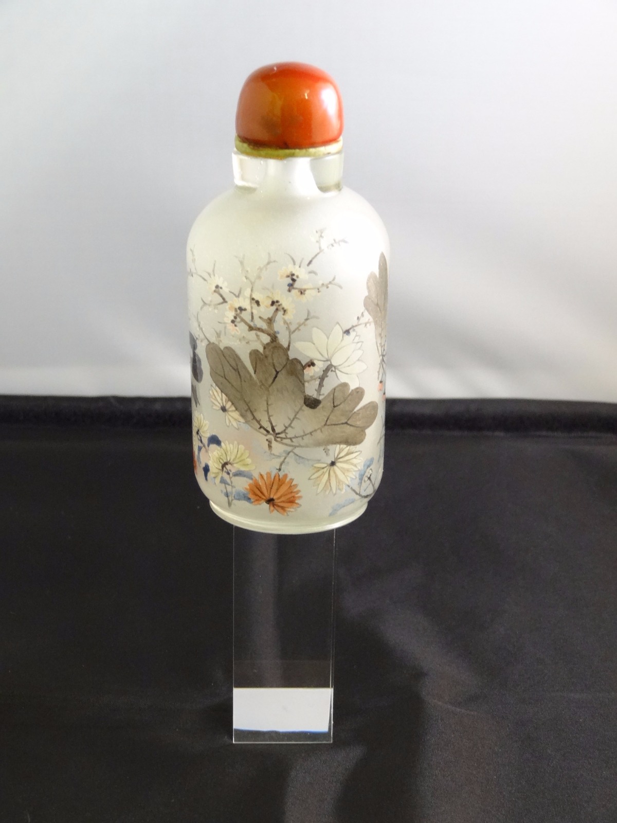 Chinese Pale Glass Snuff Bottle, Interior Painted with Flowers and Foliage, circa 20th Century