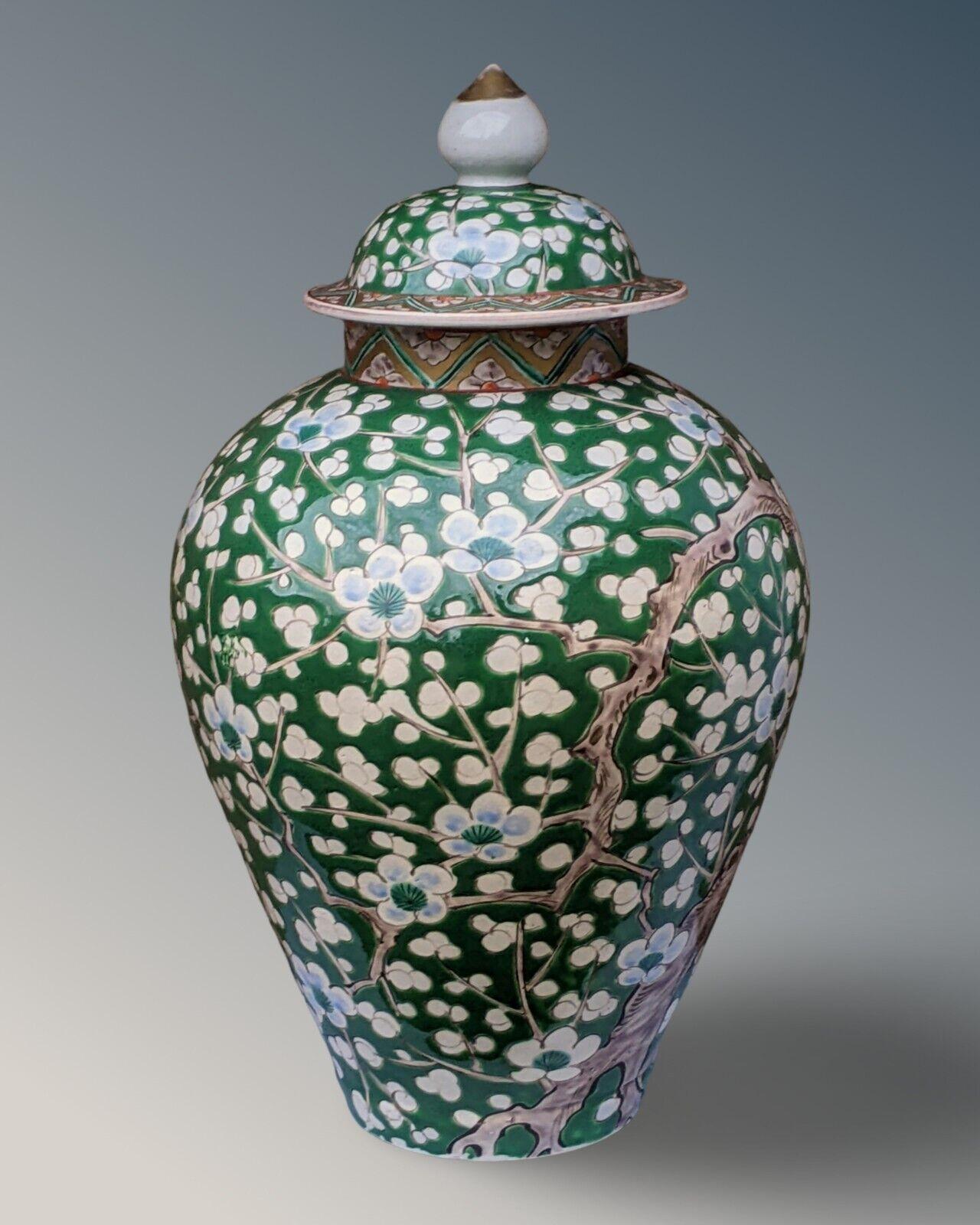 Chinese Porcelain Lidded Jar Prunus Pattern