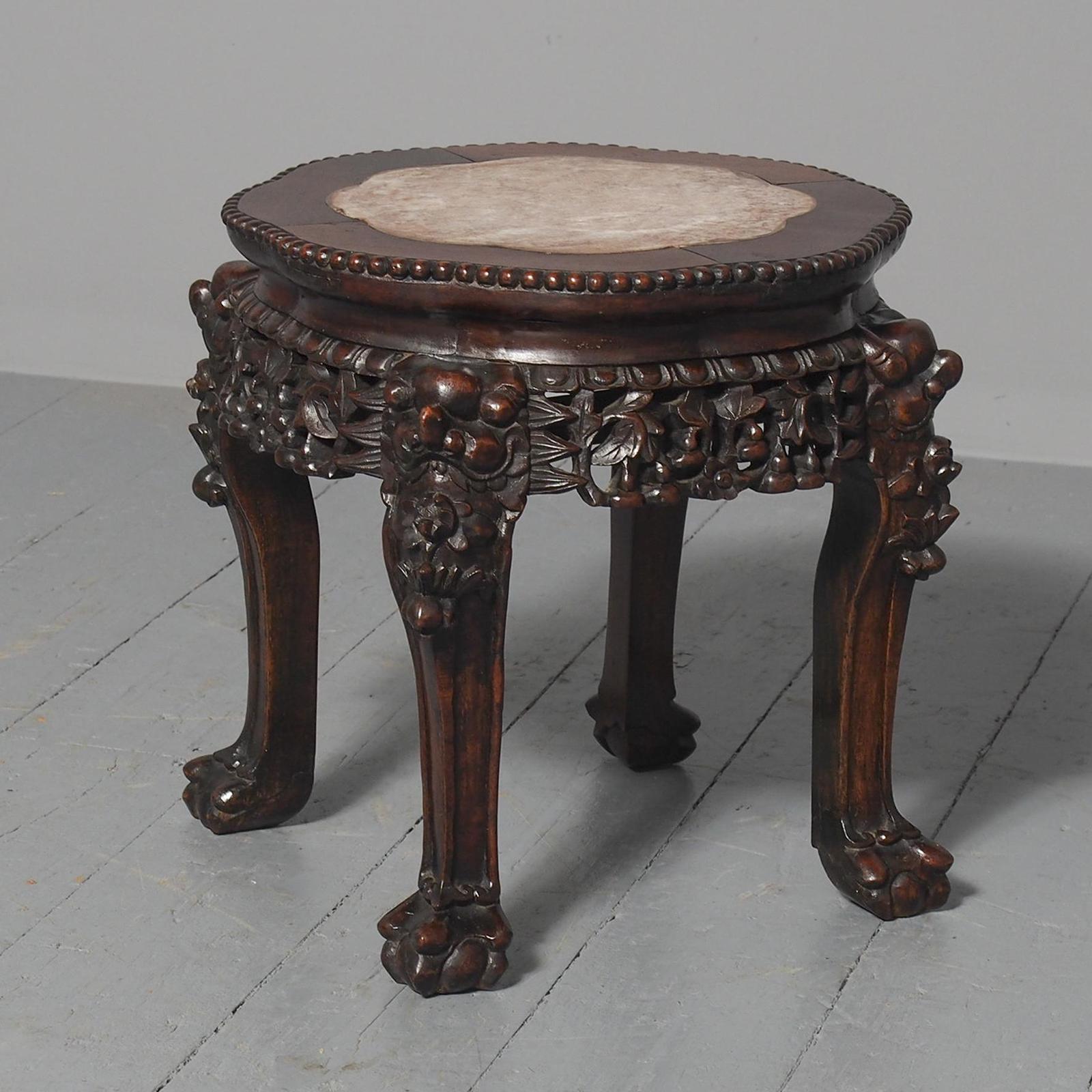 Chinese Qing Dynasty Huanghuali Marble Top Table
