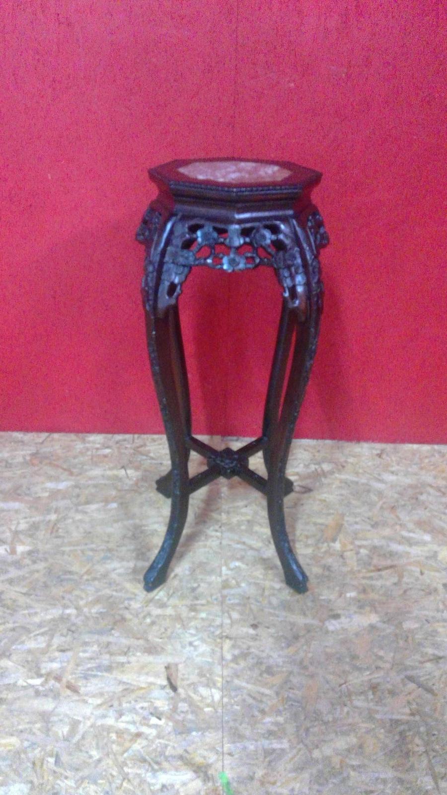 Chinese Qing Period Carved Cherrywood Marble Top Stand