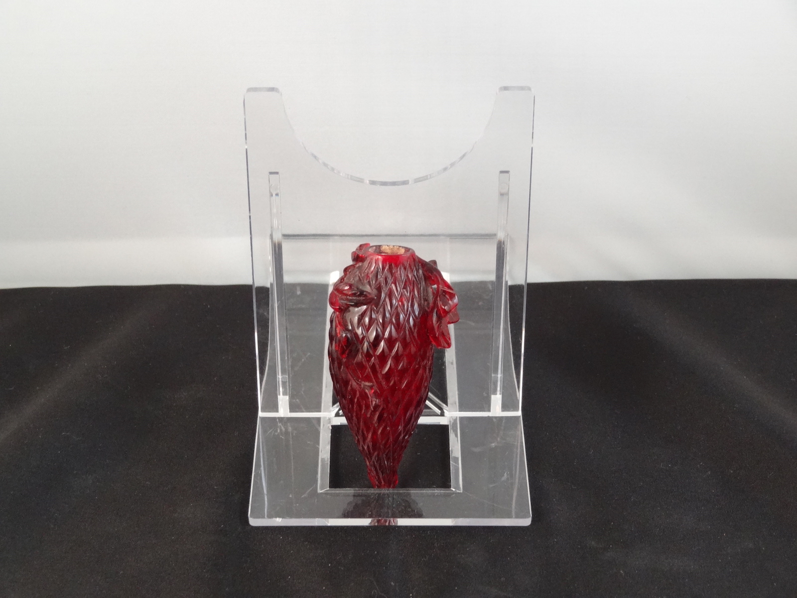 Chinese Red Glass Snuff Bottle, Carved Elongated Mulberry C.1900