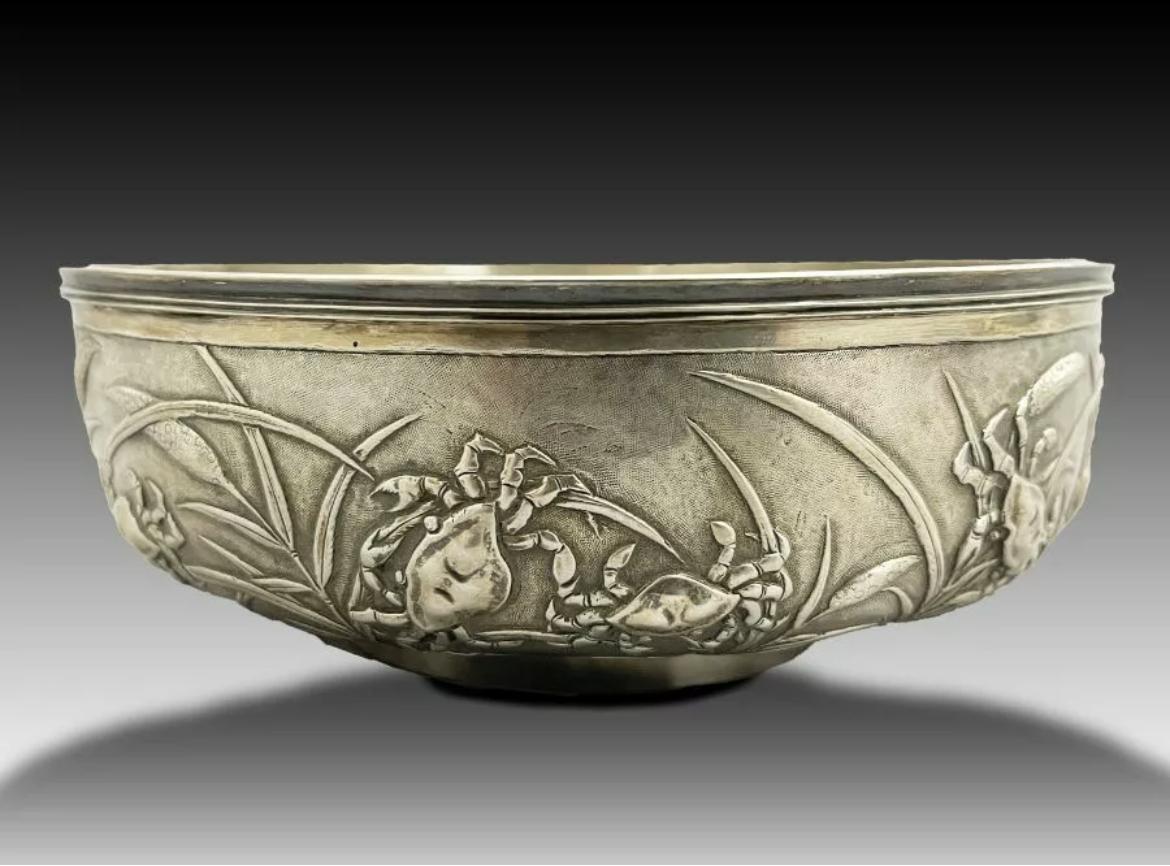 Chinese Repousse Silver Crab Bowl Qing Dynasty