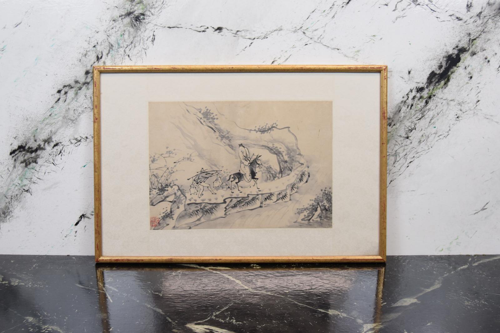 Chinese Signed Watercolour & Ink Painting, Horse & Rider, Framed and Glazed